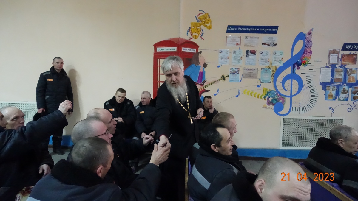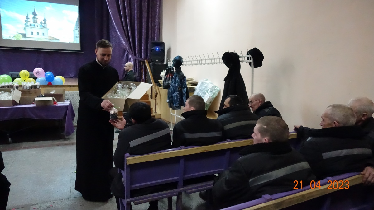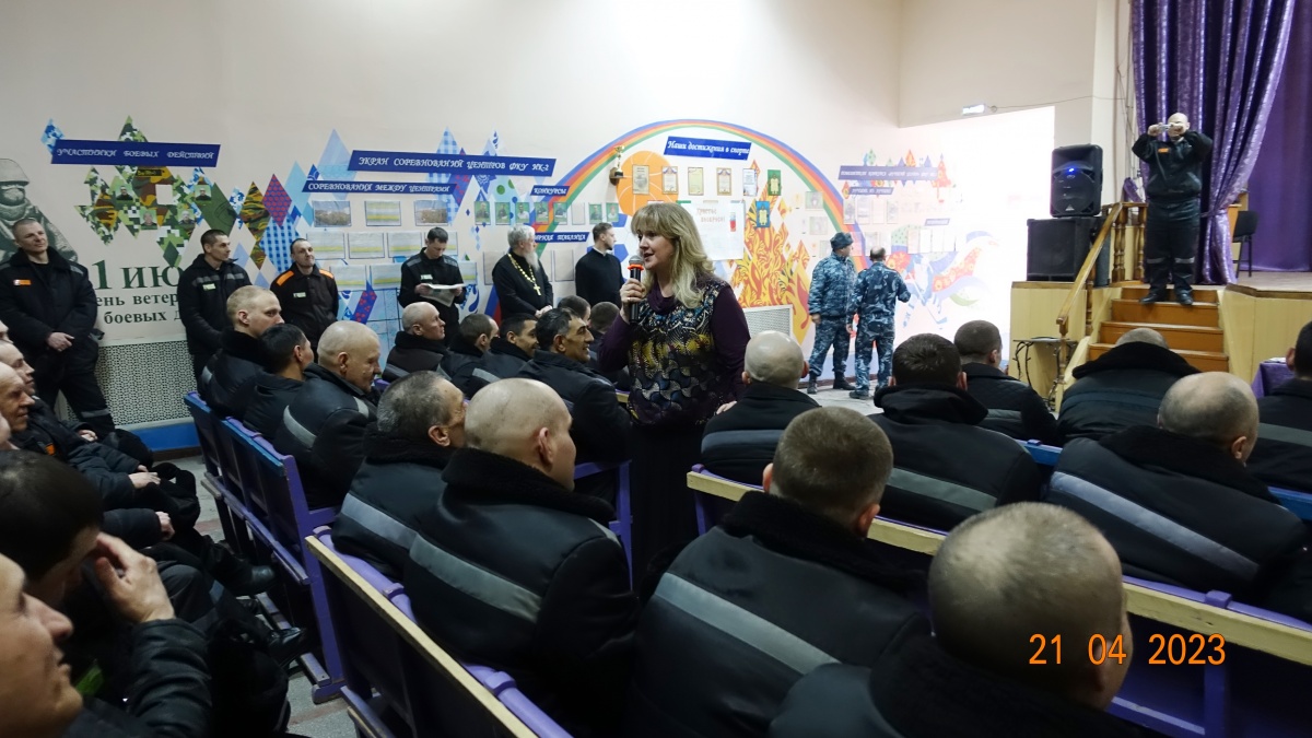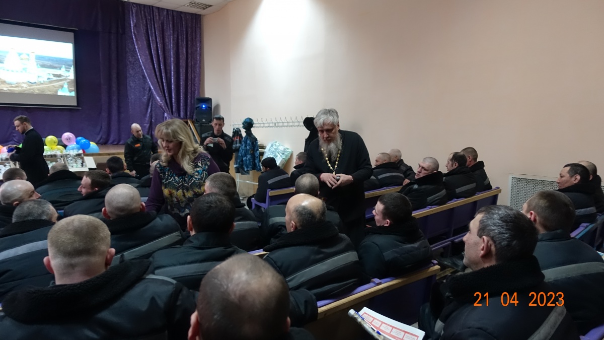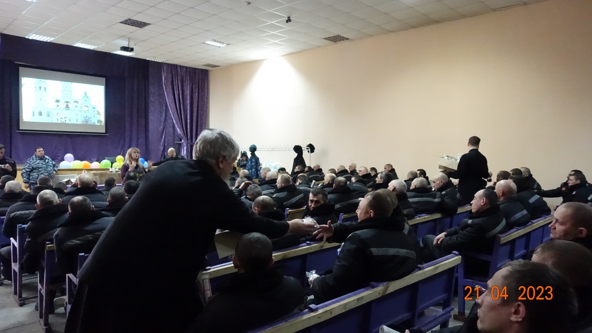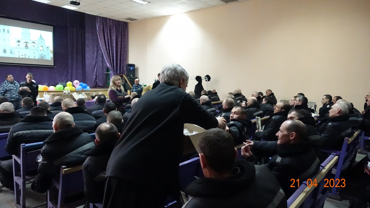 Так же на встрече говорили о Победе в Великой Отечественной войне, подвигах героев России и о любви к родине. Двести пятьдесят осужденных приняли активное участие в торжественном мероприятии. С интересом слушали, размышляли о смысле жизни и задавали вопросы. Христос Воскресе!