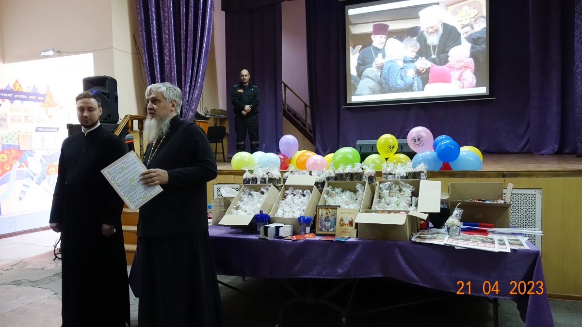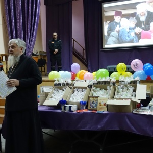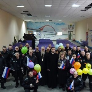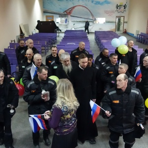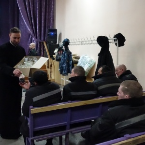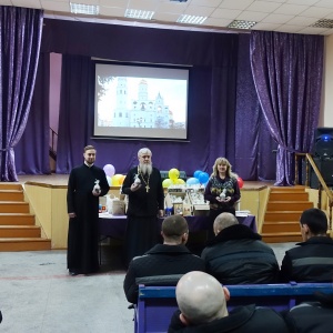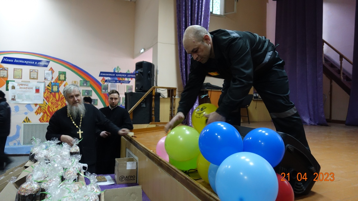 Священнослужители поздравили осужденных с праздником Великой Пасхи, рассказали историю праздника и пропели пасхальные часы. Отцы пожелали всем присутствующим, быть терпимее друг к другу и приумножать любовь к родной земле. Пасхальные гостинцы - освященные куличи, яйца, конфеты, иконы и духовную литературу подарили всем присутствующим.