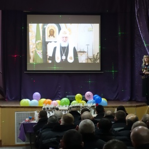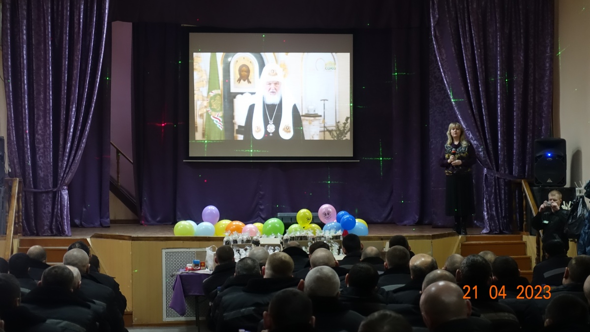 В начале встречи, осужденным была представлена видеозапись Пасхального послания Патриарха Кирилла. Патриарх поздравил всех с Пасхой и отметил, что мы живем в очень непростое, судьбоносное время. По его словам, простых времен, конечно, не бывает, но сегодня видно, как умножились скорби и страдания людей, а в сердцах у многих оскудела любовь.