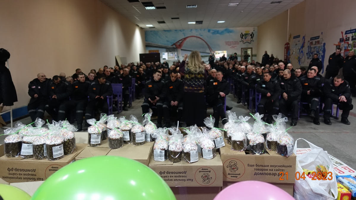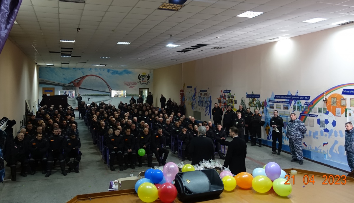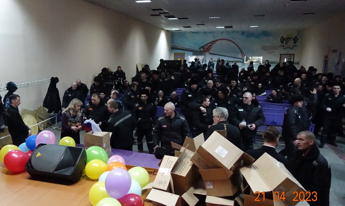 В исправительной колонии № 2 состоялось торжественное культурно-просветительское мероприятие, посвященное празднику Светлого Христова Воскресения.21 апреля 2023 года, в исправительной колонии строгого режима № 2 состоялось торжественное культурно-просветительское мероприятие посвященное празднику Светлого Христова Воскресения. В мероприятии приняли участие священнослужители Вознесенского Кафедрального Собора Новосибирской Епархии- руководитель центра милосердия при Вознесенском кафедральном соборе, иерей Владимир Добринов, диакон Сергий Ходаковский и член общественного совета ГУФСИН России по Новосибирской области, журналист Наталья Пендюрина. https://vk.com/n.pendyurinakapina