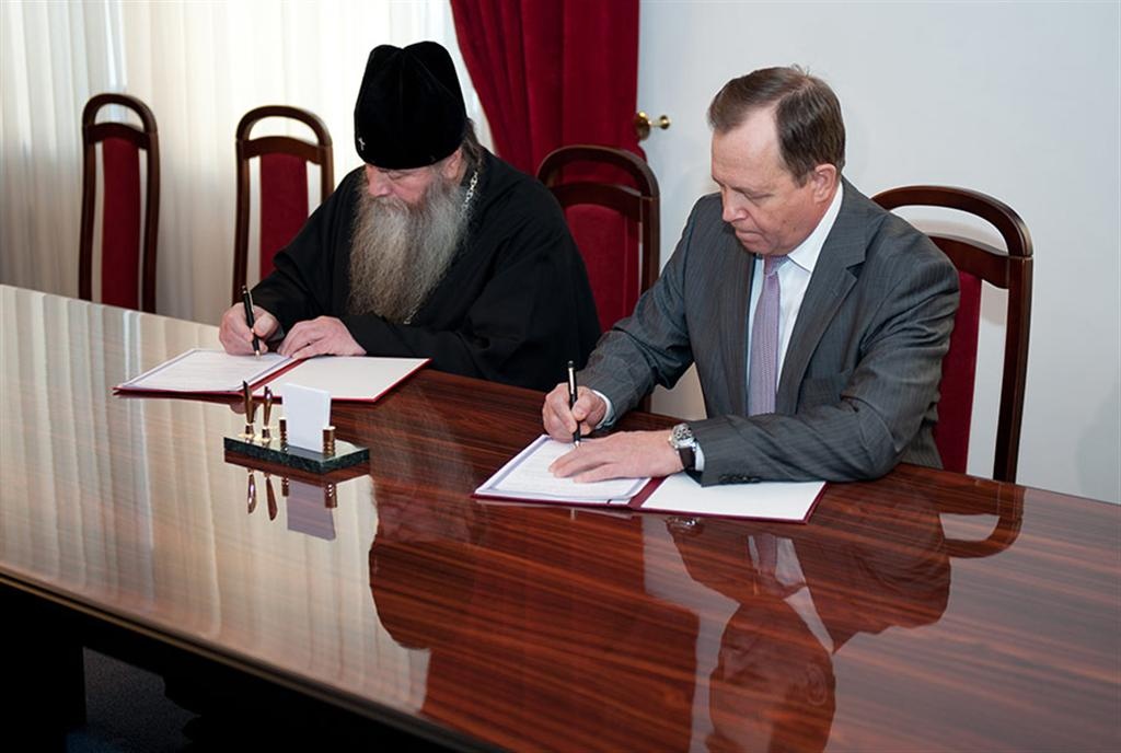 17 января состоится подписание «Соглашения о сотрудничестве между Министерством образования и Новосибирской ЕпархиейОБЩЕСТВО НЕ МОЖЕТ СУЩЕСТВОВАТЬ БЕЗ ДУХОВНО-НРАВСТВЕННОЙ КУЛЬТУРЫ 17 января 2010 года в 12.00, в здании официальной резиденции Епархии по адресу – ул.Сибревкома, 8, состоится подписание «Соглашения о сотрудничестве между Министерством образования, науки и инновационной политики Новосибирской области и Новосибирской Епархией Русской Православной Церкви в сфере образования и духовно-нравственного воспитания детей и молодежи Новосибирской области». Соглашение о сотрудничестве в целях образования и духовно-нравственного воспитания детей и молодежи, формирования у обучающихся целостного мировоззрения, представления о православной культуре, как о важнейшей составляющей российской и мировой культуры, развития духовно-нравственного просвещения и культурно-педагогических традиций в системе образования подпишут Управляющий Новосибирской Епархией Архиепископ Новосибирский и Бердский Тихон и Министр образования, науки и инновационной политики Новосибирской области Никонов Владимир Алексеевич. Постановлением Губернатора области от 28 августа 2010 года был образован совет при Правительстве Новосибирской области по вопросам апробации в 2010-2011 учебном году комплексного учебного курса для общеобразовательных учреждений «Основы религиозных культур и светской этики», основными задачами которого являются: обеспечение свободы выбора учащимися и их родителями (законными представителями) модуля обучения; содействие повышению квалификации учителей, преподающих предметы духовно-нравственной культуры; обеспечение эксперимента учебно-методическими пособиями. Это позволило образовательным учреждением Новосибирской области, в соответствии Поручением Президента РФ Д.А. Медведева от 02.08.2009 г. и Распоряжением Председателя Правительства РФ В.В. Путина от 11.08.2011 г., в 2010-2011 учебном году, участвовать в педагогическом эксперименте по апробации учебных предметов комплексного курса «Основы религиозных культур и светской этики». Первое «Соглашение о сотрудничестве между Новосибирской Епархией Русской Православной Церкви и Департаментом образования Администрации Новосибирской области в сфере образования и духовно-нравственного воспитания детей и молодежи Новосибирской области», было подписано 23 мая 2001 года, в канун Дня славянской письменности и культуры. Аналогичное Соглашение 23 августа 2001 года было подписано Новосибирской Епархией и с Управлением образования мэрии города Новосибирска. Эти Соглашения отражали начальный уровень взаимодействия между государственными и муниципальными образовательными системами, с одной стороны, и образовательной деятельностью Новосибирской Епархии – с другой. Само сотрудничество началось гораздо раньше – с 1993 года, с того момента, когда стали ежегодно проводиться совместные педагогические форумы, конференции, чтения. В 2007 году Соглашение о сотрудничестве между Новосибирской Епархией Русской Православной Церкви и Департаментом образования Новосибирской области в сфере образования и духовно-нравственного воспитания детей и молодежи Новосибирской области было усовершенствовано и пролонгировано. В настоящее время в 154 общеобразовательных школах города и области препод