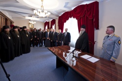 Соглашение о сотрудничестве между Новосибирской митрополией и пограничным Управлением ФСБ РФ по Новосибирской области подписано!В официальной резиденции Новосибирской Митрополии состоялась торжественная церемония подписания Соглашения о сотрудничестве между Новосибирской Митрополией Русской Православной Церкви и Пограничным управлением Федеральной службы безопасности России по Новосибирской области. Осознавая важнейшую роль Русской Православной Церкви в духовно-нравственном и патриотическом воспитании воинов и принимая во внимание вековые традиции духовного окормления Русской Православной Церковью российского воинства, в присутствии Епископа Луки, Управляющего Искитимской и Черепановской Епархией, Епископа Филиппа, Управляющего Карасукской и Ордынской Епархией и Епископа Феодосия, Управляющего Каинской и Барабинской Епархией, почетных гостей церемонии, представителей Пограничного управления и Новосибирской Митрополии, Соглашение о сотрудничестве подписали Глава Новосибирской Митрополии Митрополит Новосибирский и Бердский Тихон и начальник Пограничного управления ФСБ России по Новосибирской области генерал-майор Чмыхайло Аркадий Владимирович. Новосибирская Епархия и ПУ ФСБ РФ по Новосибирской области, на протяжении уже многих лет, организуют и проводят Крестные ходы вдоль государственной границы Российской Федерации и ряд совместных мероприятий на пограничных заставах. Подписание Соглашения о сотрудничестве, даст возможность расширить спектр сотрудничества в рамках новообразованной Новосибирской Митрополии Русской Православной Церкви. В церемонии подписания Соглашения приняли участие официальные представители Митрополии и Погрануправления ФСБ, Правительства Новосибирской области и мэрии города Новосибирска.
