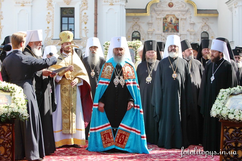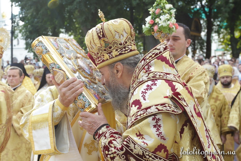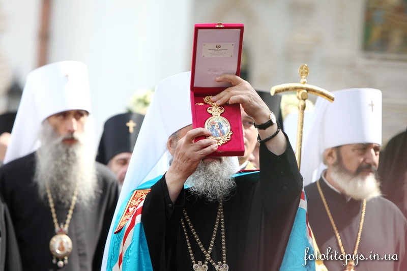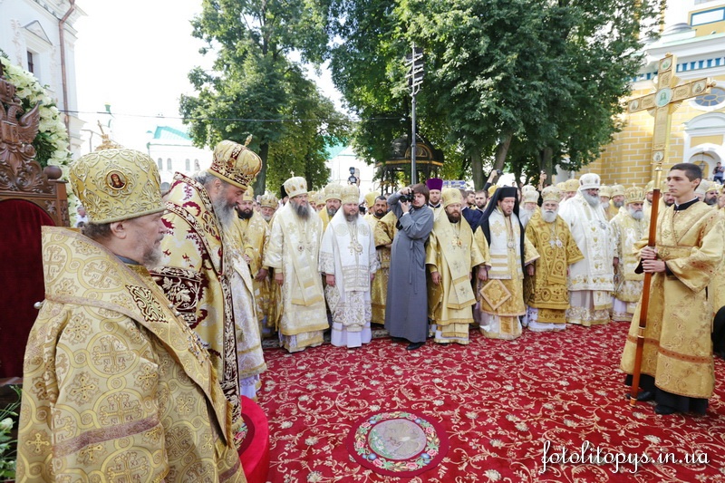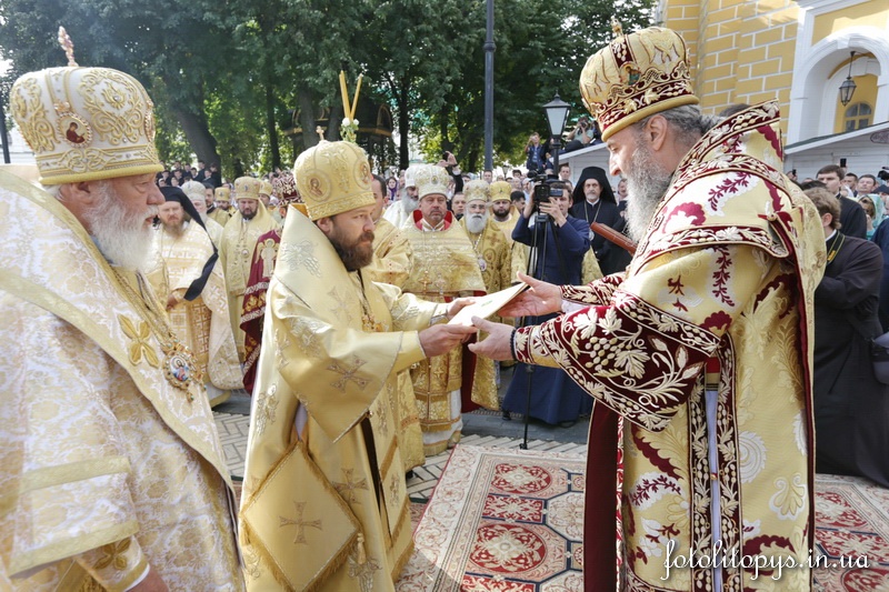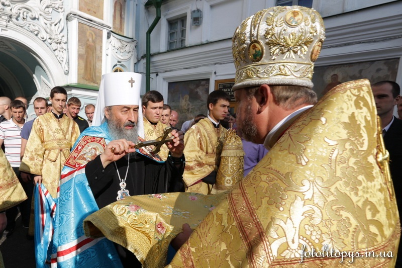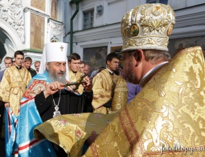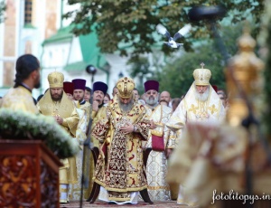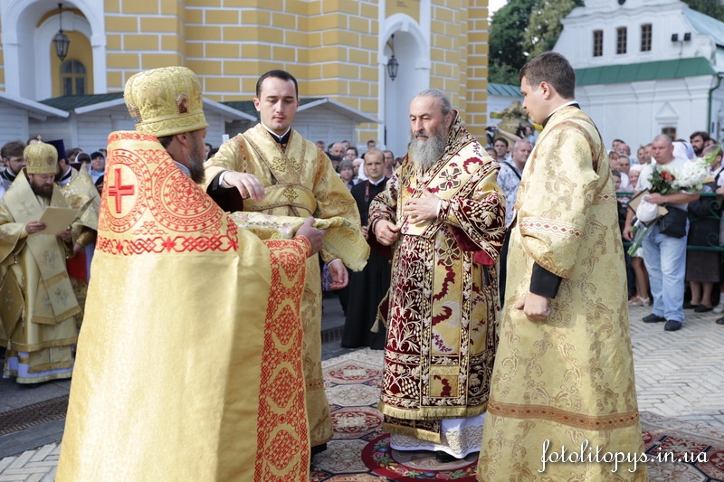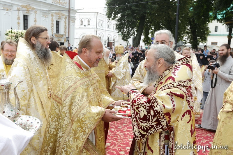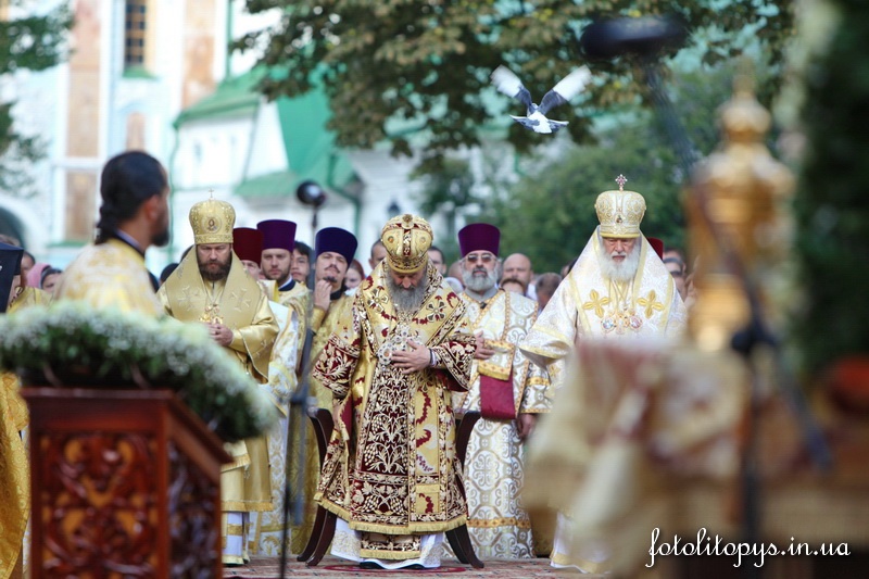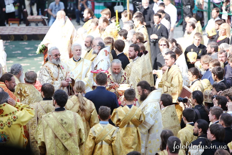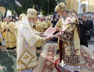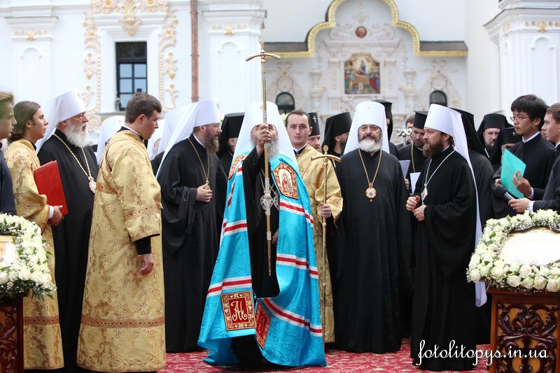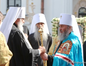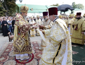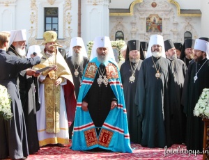 В Киево-Печерской лавре состоялась интронизация митрополита Киевского и всея Украины Онуфрия (фоторепортаж + видео)17 августа за Божественной литургией в Успенской Киево-Печерской Лавре состоялась интронизация Блаженнейшего митрополита Киевского и всея Украины Онуфрия, избранного 13 августа на Соборе епископов УПЦ Предстоятелем Украинской Православной Церкви. В богослужении, которое совершалось при большом стечении народа на площади перед Успенским собором, приняли участие: представитель Святейшего Патриарха Кирилла митрополит Волоколамский Иларион, представители Поместных Церквей: Константинопольской – митрополит Галльский Эммануил, Александрийской – митрополит Киринский Афанасий, Иерусалимской – митрополит Вострский Тимофей, Грузинской – митрополит Некресский Сергий и митрополит Потийский и Хобский Григорий, Сербской – епископ Моравичский Антоний, Румынской – митрополит Тырговиштский Нифон, Болгарской – митрополит Русенский Наум, Элладской – епископ Христианупольский Прокопий, Польской – архиепископ Люблинский и Холмский Авель, Чешских земель и Словакии – архимандрит Серафим (Шемятовский), Православной Церкви в Америке – епископ Нью-Йоркский и Нью-Джерсийский Михаил и епископ Квебекский Ириней, а также архиепископ Берлинско-Германский и Великобританский Марк (Русская Зарубежная Церковь), епископат и духовенство Украинской Православной Церкви. По Малом входе старейший по хиротонии член Священного Синода Украинской Православной Церкви митрополит Одесский и Измаильский Агафангел зачитал определение Собора епископов Украинской Православной Церкви об избрании митрополита Черновицкого и Буковинского Онуфрия Блаженнейшим митрополитом Киевским и всея Украины, а председатель Отдела внешних церковных связей Московского Патриархата митрополит Волоколамский Иларион огласил грамоту Святейшего Патриарха Московского и всея Руси Кирилла с благословением митрополиту Онуфрию на вступление в должность Предстоятеля Украинской Православной Церкви. После пения Трисвятого митрополит Одесский и Измаильский Агафангел и митрополит Симферопольский и Крымский Лазарь трижды торжественно посаждали владыку Онуфрия на Митрополичий трон на горнем месте. По завершении службы митрополит Одесский и Измаильский Агафангел от имени епископата, духовенства и верующих Украинской Православной Церкви поздравил Блаженнейшего митрополита Онуфрия с избранием на кафедру Киевских митрополитов и вручил жезл его предшественника – Блаженнейшего митрополита Владимира. Митрополит Волоколамский Иларион огласил приветственный адрес Святейшего Патриарха Московского и всея Руси Блаженнейшему митрополиту Киевскому и всея Украины Онуфрию и передал Его Блаженству памятный Патриарший дар – архиерейский жезл. После этого были оглашены поздравления от представителей власти и Предстоятелей Поместных Православных Церквей.