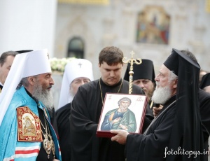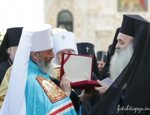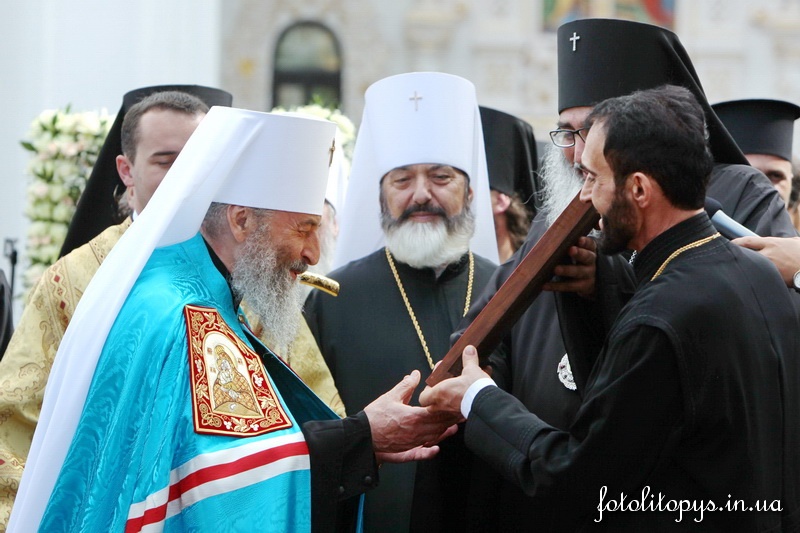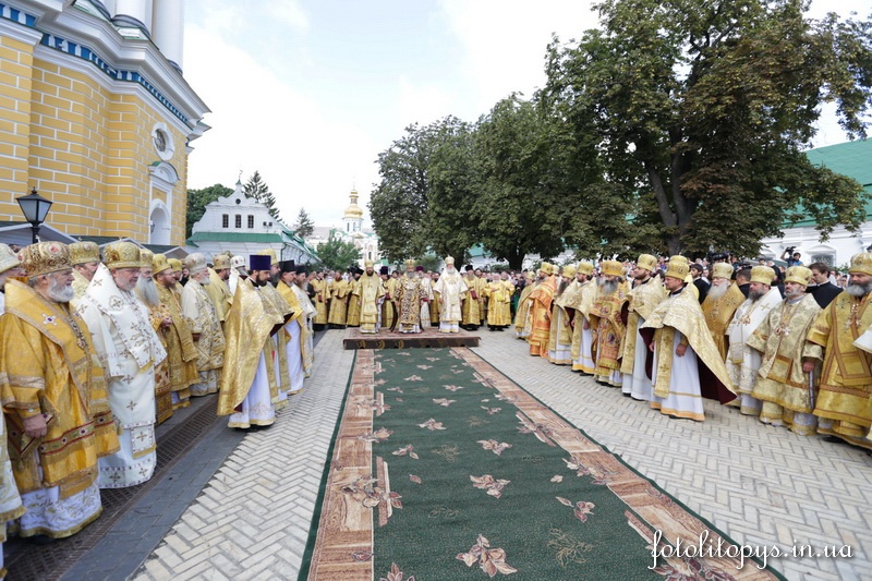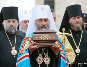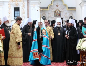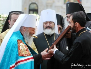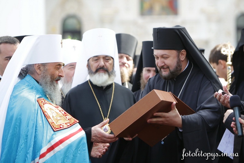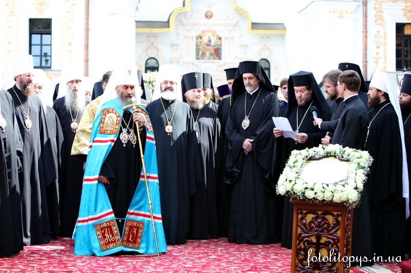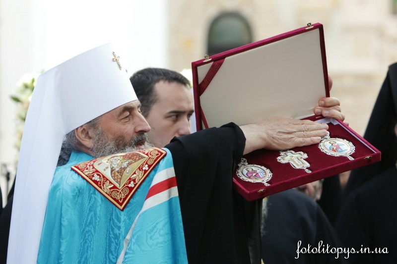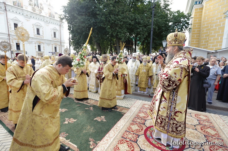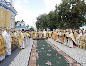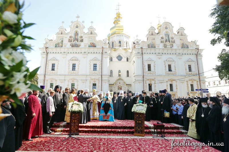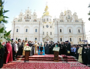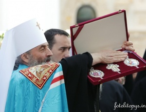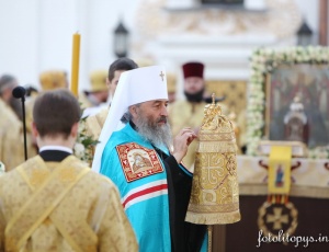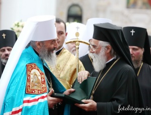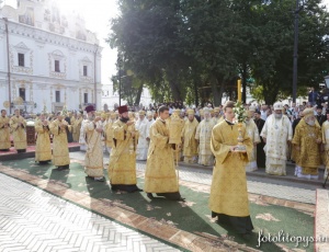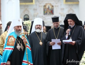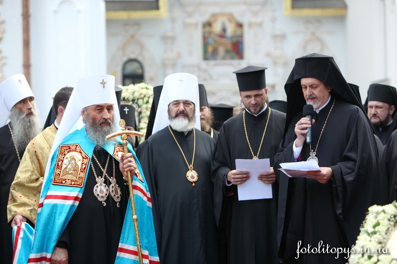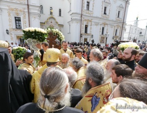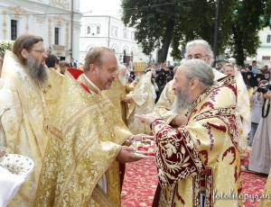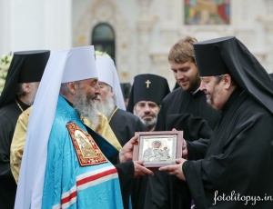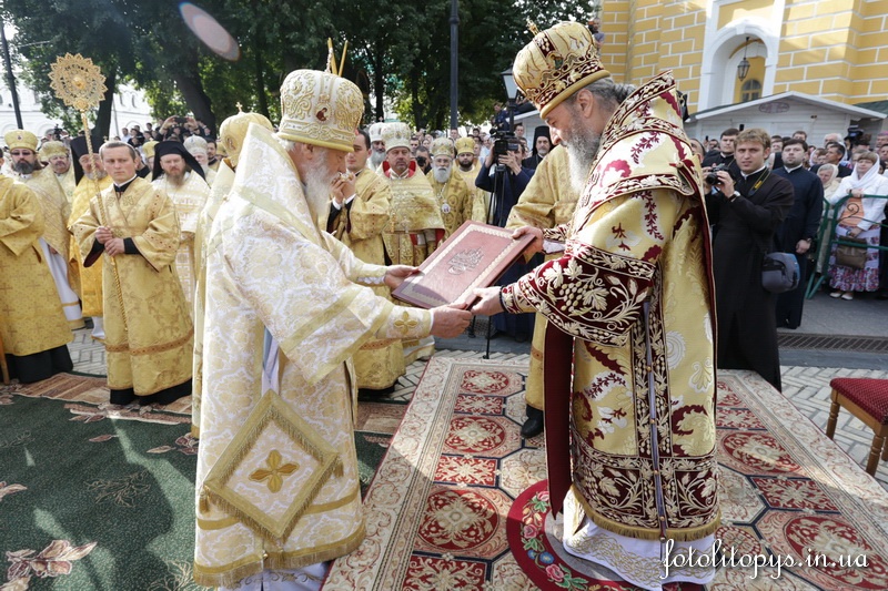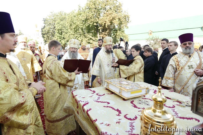 В Киево-Печерской лавре состоялась интронизация митрополита Киевского и всея Украины Онуфрия (фоторепортаж + видео)17 августа за Божественной литургией в Успенской Киево-Печерской Лавре состоялась интронизация Блаженнейшего митрополита Киевского и всея Украины Онуфрия, избранного 13 августа на Соборе епископов УПЦ Предстоятелем Украинской Православной Церкви. В богослужении, которое совершалось при большом стечении народа на площади перед Успенским собором, приняли участие: представитель Святейшего Патриарха Кирилла митрополит Волоколамский Иларион, представители Поместных Церквей: Константинопольской – митрополит Галльский Эммануил, Александрийской – митрополит Киринский Афанасий, Иерусалимской – митрополит Вострский Тимофей, Грузинской – митрополит Некресский Сергий и митрополит Потийский и Хобский Григорий, Сербской – епископ Моравичский Антоний, Румынской – митрополит Тырговиштский Нифон, Болгарской – митрополит Русенский Наум, Элладской – епископ Христианупольский Прокопий, Польской – архиепископ Люблинский и Холмский Авель, Чешских земель и Словакии – архимандрит Серафим (Шемятовский), Православной Церкви в Америке – епископ Нью-Йоркский и Нью-Джерсийский Михаил и епископ Квебекский Ириней, а также архиепископ Берлинско-Германский и Великобританский Марк (Русская Зарубежная Церковь), епископат и духовенство Украинской Православной Церкви. По Малом входе старейший по хиротонии член Священного Синода Украинской Православной Церкви митрополит Одесский и Измаильский Агафангел зачитал определение Собора епископов Украинской Православной Церкви об избрании митрополита Черновицкого и Буковинского Онуфрия Блаженнейшим митрополитом Киевским и всея Украины, а председатель Отдела внешних церковных связей Московского Патриархата митрополит Волоколамский Иларион огласил грамоту Святейшего Патриарха Московского и всея Руси Кирилла с благословением митрополиту Онуфрию на вступление в должность Предстоятеля Украинской Православной Церкви. После пения Трисвятого митрополит Одесский и Измаильский Агафангел и митрополит Симферопольский и Крымский Лазарь трижды торжественно посаждали владыку Онуфрия на Митрополичий трон на горнем месте. По завершении службы митрополит Одесский и Измаильский Агафангел от имени епископата, духовенства и верующих Украинской Православной Церкви поздравил Блаженнейшего митрополита Онуфрия с избранием на кафедру Киевских митрополитов и вручил жезл его предшественника – Блаженнейшего митрополита Владимира. Митрополит Волоколамский Иларион огласил приветственный адрес Святейшего Патриарха Московского и всея Руси Блаженнейшему митрополиту Киевскому и всея Украины Онуфрию и передал Его Блаженству памятный Патриарший дар – архиерейский жезл. После этого были оглашены поздравления от представителей власти и Предстоятелей Поместных Православных Церквей.