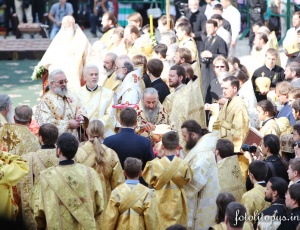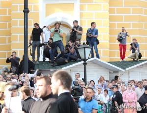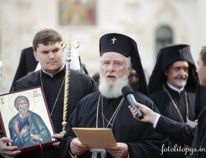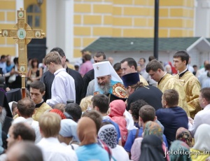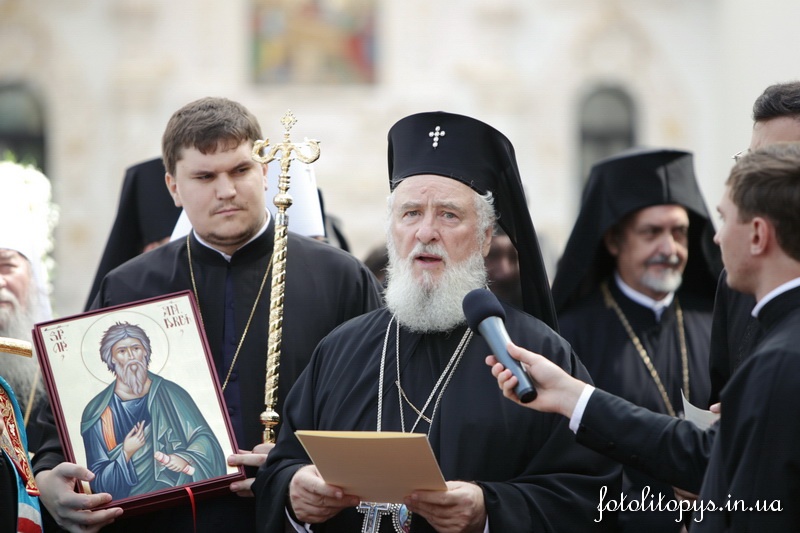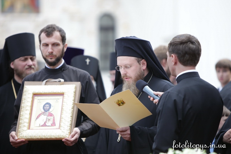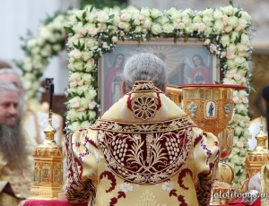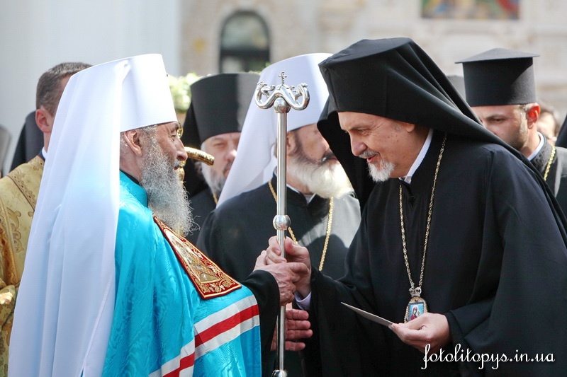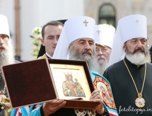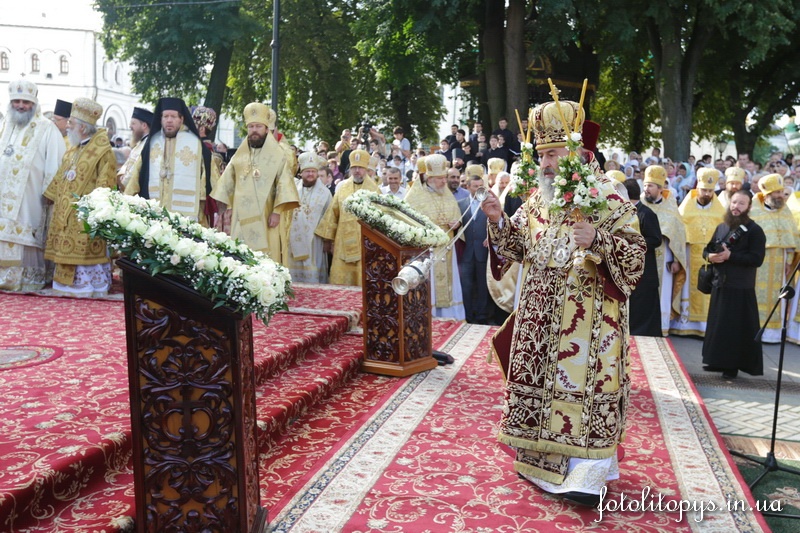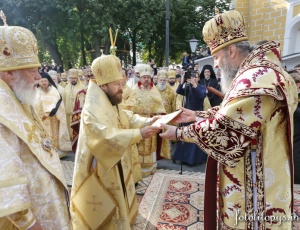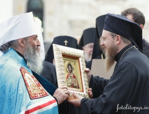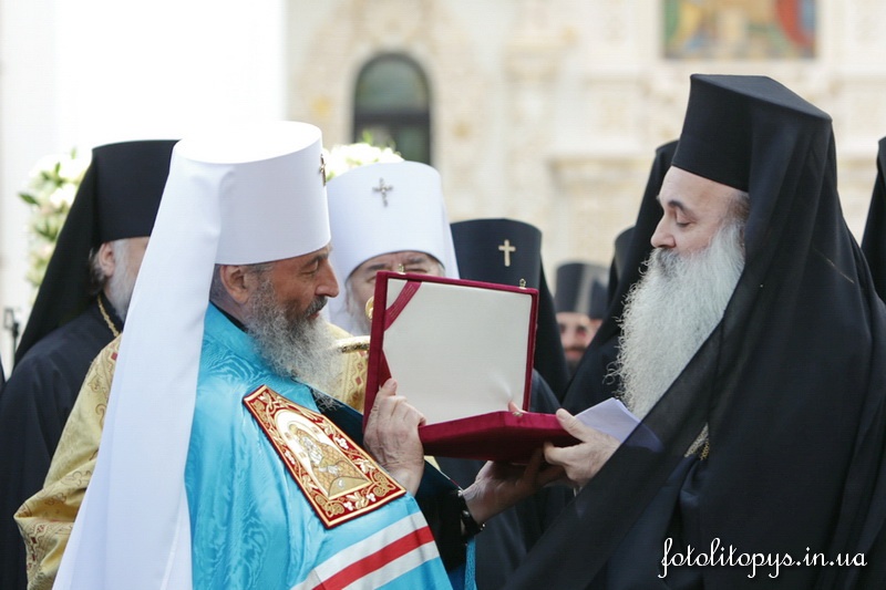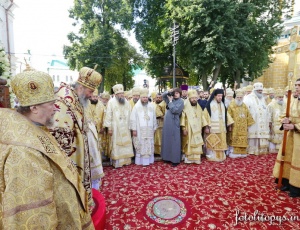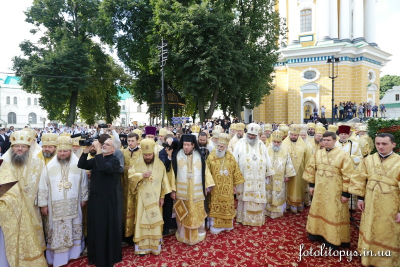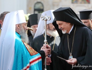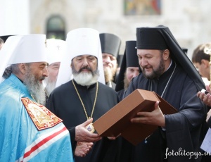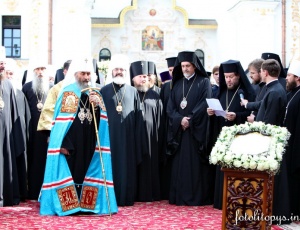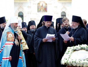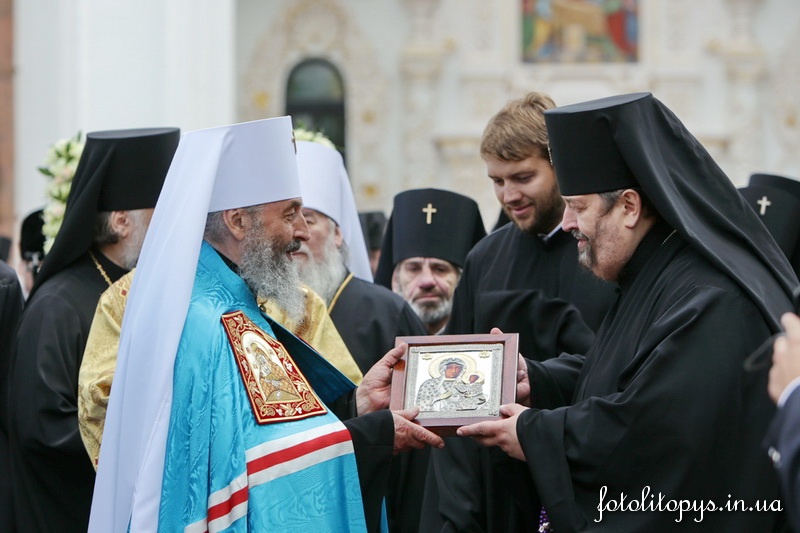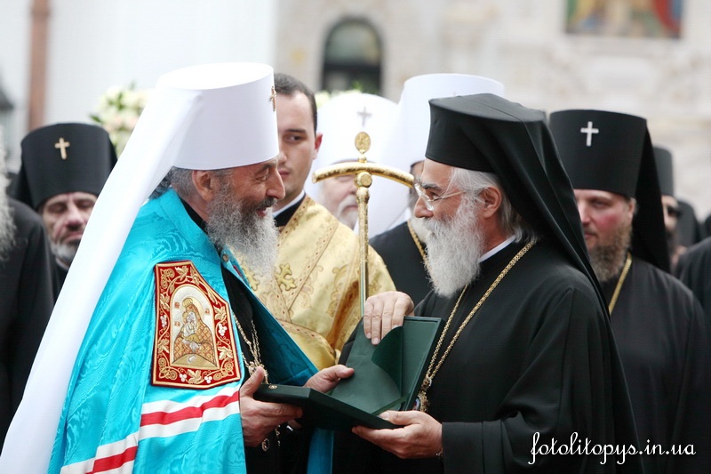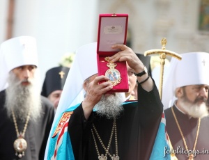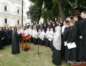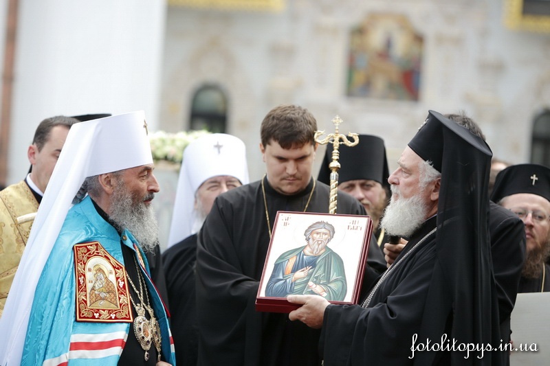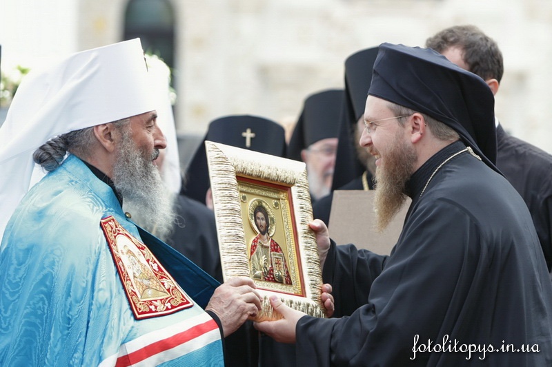 В Киево-Печерской лавре состоялась интронизация митрополита Киевского и всея Украины Онуфрия (фоторепортаж + видео)17 августа за Божественной литургией в Успенской Киево-Печерской Лавре состоялась интронизация Блаженнейшего митрополита Киевского и всея Украины Онуфрия, избранного 13 августа на Соборе епископов УПЦ Предстоятелем Украинской Православной Церкви. В богослужении, которое совершалось при большом стечении народа на площади перед Успенским собором, приняли участие: представитель Святейшего Патриарха Кирилла митрополит Волоколамский Иларион, представители Поместных Церквей: Константинопольской – митрополит Галльский Эммануил, Александрийской – митрополит Киринский Афанасий, Иерусалимской – митрополит Вострский Тимофей, Грузинской – митрополит Некресский Сергий и митрополит Потийский и Хобский Григорий, Сербской – епископ Моравичский Антоний, Румынской – митрополит Тырговиштский Нифон, Болгарской – митрополит Русенский Наум, Элладской – епископ Христианупольский Прокопий, Польской – архиепископ Люблинский и Холмский Авель, Чешских земель и Словакии – архимандрит Серафим (Шемятовский), Православной Церкви в Америке – епископ Нью-Йоркский и Нью-Джерсийский Михаил и епископ Квебекский Ириней, а также архиепископ Берлинско-Германский и Великобританский Марк (Русская Зарубежная Церковь), епископат и духовенство Украинской Православной Церкви. По Малом входе старейший по хиротонии член Священного Синода Украинской Православной Церкви митрополит Одесский и Измаильский Агафангел зачитал определение Собора епископов Украинской Православной Церкви об избрании митрополита Черновицкого и Буковинского Онуфрия Блаженнейшим митрополитом Киевским и всея Украины, а председатель Отдела внешних церковных связей Московского Патриархата митрополит Волоколамский Иларион огласил грамоту Святейшего Патриарха Московского и всея Руси Кирилла с благословением митрополиту Онуфрию на вступление в должность Предстоятеля Украинской Православной Церкви. После пения Трисвятого митрополит Одесский и Измаильский Агафангел и митрополит Симферопольский и Крымский Лазарь трижды торжественно посаждали владыку Онуфрия на Митрополичий трон на горнем месте. По завершении службы митрополит Одесский и Измаильский Агафангел от имени епископата, духовенства и верующих Украинской Православной Церкви поздравил Блаженнейшего митрополита Онуфрия с избранием на кафедру Киевских митрополитов и вручил жезл его предшественника – Блаженнейшего митрополита Владимира. Митрополит Волоколамский Иларион огласил приветственный адрес Святейшего Патриарха Московского и всея Руси Блаженнейшему митрополиту Киевскому и всея Украины Онуфрию и передал Его Блаженству памятный Патриарший дар – архиерейский жезл. После этого были оглашены поздравления от представителей власти и Предстоятелей Поместных Православных Церквей.