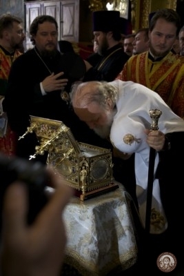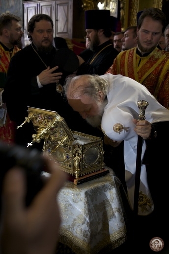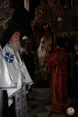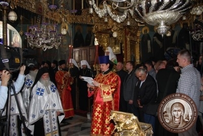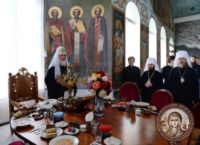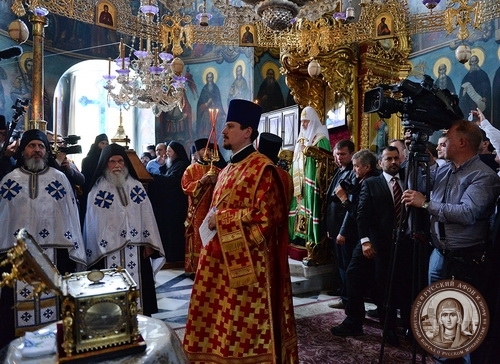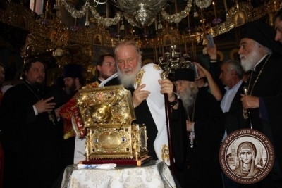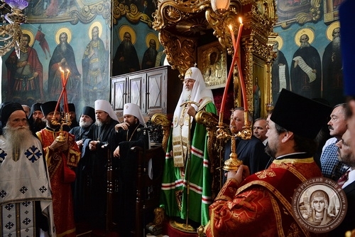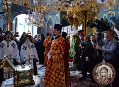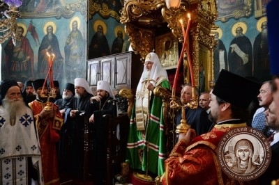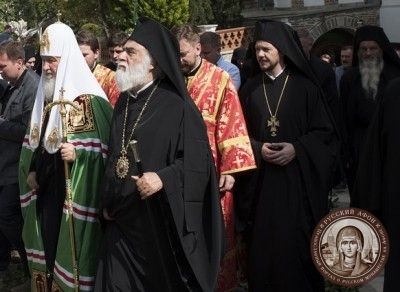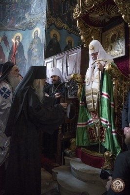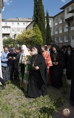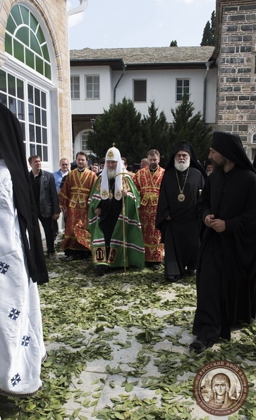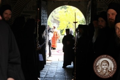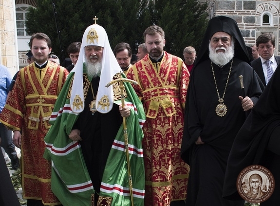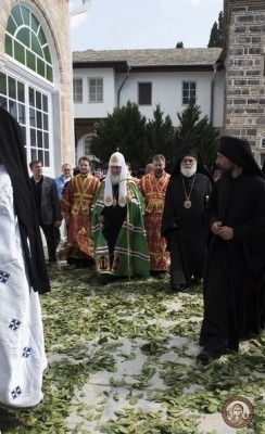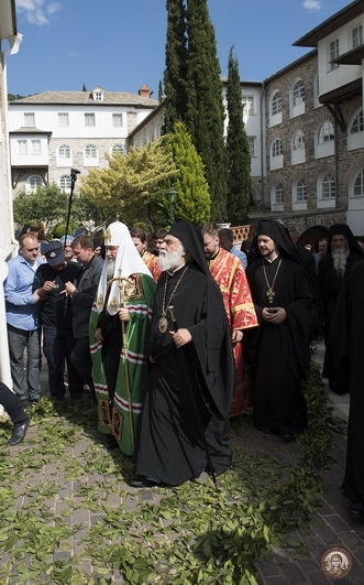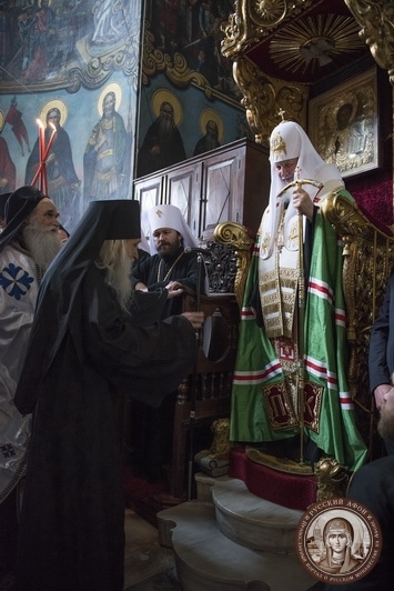 Московский Патриарх прибыл в Пантелеимонов монастырь, дабы возглавить торжества в честь 1000-летия Русского Афона (+ФОТО)После посещения Священного Кинота Афона Святейший Патриарх Московский и всея Руси Кирилл 27 мая прибыл в Русский Свято-Пантелеимонов монастырь, где проходят торжества в честь 1000-летия русского святогорского монашества, — сообщает корреспондент портала «Русский Афон». У монастырских Святых врат 100-летний игумен Иеремия (Алехин) и братия обители под звон колоколов торжественно встретили Предстоятеля Русской Церкви. По древней афонской традиции путь патриарха от ворот к соборному храму был устлан «ковром» из лавровых листьев и ветвей. Последовав в Пантелеимоновский собор, Патриарх и делегация РПЦ поклонились хранящейся здесь главной святыне обители — главе св. влмч. Пантелеимона. После этого был совершен молебен всем святым русским святогорцам. По окончании молебна Святейшего Владыку приветствовал игумен монастыря схиархимандрит Иеремия (Алехин). Затем Предстоятель обратился к собравшимся в храме с пастырским словом, отметив чрезвычайную важность празднуемого ныне юбилея 1000-летия русского монашества на Афоне. В этот же день Предстоятель принял участие в вечернем богослужени, посвященном памяти всех преподобных русских святогорцев, просиявших на Афоне. Среди них прпп. Антоний Печерский и Нил Сорский — подвижники Ксилургийской Лавры, свтт. Савва Сербский и Киприан Киевский, прпп. Арсений Коневский, Савва Вишерский, Паисий Величковский, Аристоклий и Силуан Афонские, Алексий Карпаторусский и многие-многие другие (всего более 50 подвижников). После богослужения Патриарх Кирил разделил трапезу с братией обители. Затем Святейший Владыка осмотрел открытый к юбилею новый музей и восстановленные строения Пантелеимонова монастыря. Святейшего Патриарха сопровождают члены официальной делегации Русской Православной Церкви в составе архиереев, настоятелей крупнейших русских монастырей, духовенства, монашествующих и мирян. Также Московского Патриарха в паломничестве по Святой Горе сопровождает официальный представитель Вселенского Константинопольского Патриарха Варфоломея митрополит Милетский Апостолос, ипертим и экзарх Ионии. Около полуночи в Русском монастыре на Афоне началось торжественное Всенощное бдение в честь памяти преподобных Русских святогорцев. Бдение совершается в главном храме обители — соборе св. вмч. и целителя Пантелеимона, в присутствии многочисленного духовенства Русской Православной Церкви, преосвященных арзхиереев, настоятелей главнейших обителей, сотен паломников из России и Украины. Богослужения совершали гости и братия обители, в певческом сопровождении братского хора Пантелеимонова монастыря и хора Троице-Сергиевой лавры под управлением архимандрита Глеба (Кожевникова). Последование службы воспевает значение подвига преподобных русских святогорцев, спасавшихся на Афоне за 1000 лет. Тропарь праздника, глас 1-й. Кондак, глас 4-й: В субботу утром Святейший Патриарх Кирилл возглавит божественную Литургию в храме св. вмч. Пантелеимона в скиту Старый Русик. Святейший владыка совершит малое освящение храма, отреставрированного к юбилею и расписанного русскими художниками во главе с В.И. Нестеренко. Как сообщал портал «Русский Афон», в 2016 году православный мир празднует юб