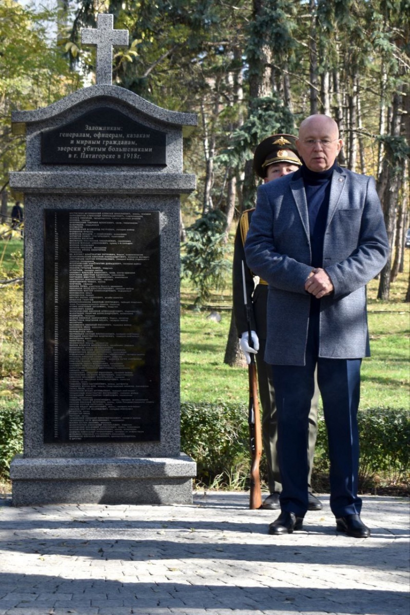 1 ноября 1918 года в районе старого кладбища Пятигорска большевистским комиссаром-палачом Атарбековым и его подельниками были зверски зарублены и заколоты штыками 104 заложника - "чуждых элементов" (офицеры, генералы, казаки, предприниматели, просто обычные жители города).