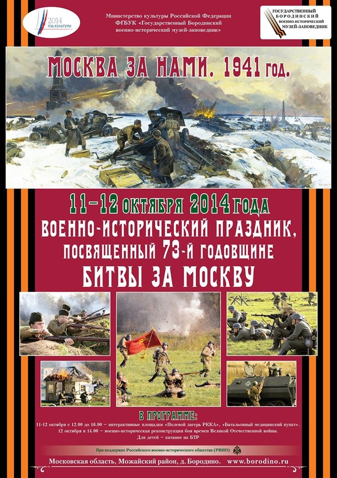 11-12 октября 2014 года на Бородинском поле состоится традиционный военно-исторический праздник, посвященный 73-й годовщине боев на Можайской линии обороны под Москвой.