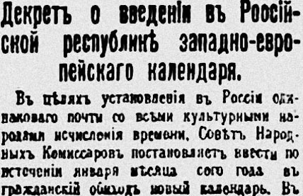 Алексей Багаев В феврале 1918 года в Советской России полным ходом шла реализация декретов, принятых ленинским правительством за короткое время. Законы о реформе образования, новых правилах орфографии и грамматики, об отделении церкви от государства и переходе на григорианский календарь нельзя считать заслугой лишь советских законотворцев. Все перечисленные декреты разрабатывались еще буржуазным Временным правительством и существовали в виде проектов,