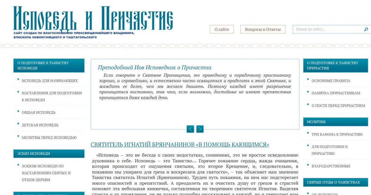 Сотрудниками Новокузнецкой епархии запущен новый сайт «Исповедь и Причастие» |