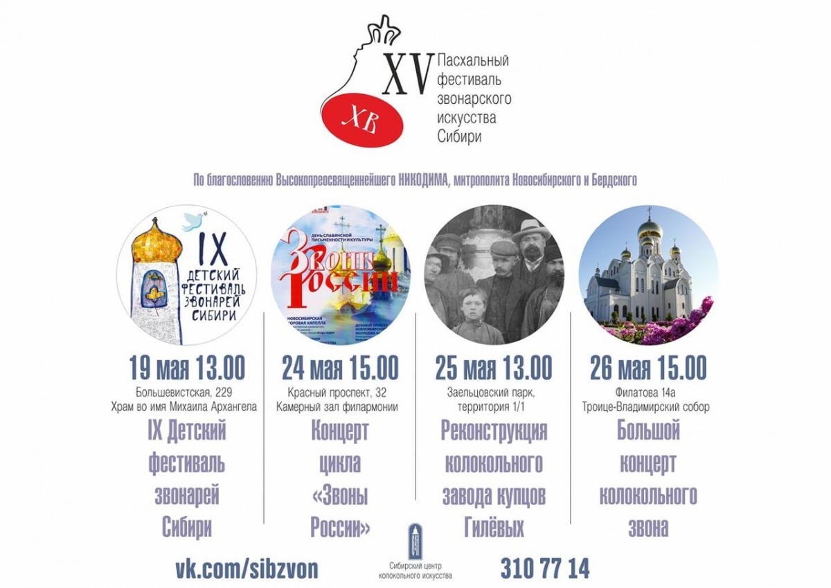Основные мероприятия XV Пасхального фестиваля звонарского искусства Сибири запланированы на 24-26 мая 2019 года. Приглашаем звонарей Сибири и других регионов России принять участие в фестивальных мероприятиях.