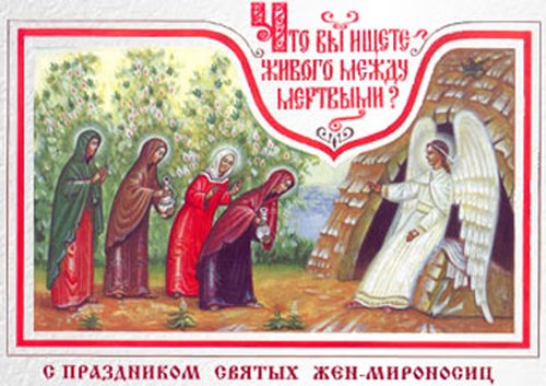 В 3-ю Неделю по Пасхе, Неделю жен-мироносиц, Православная Церковь чествует не одних только женщин, пришедших 2000 лет назад ко гробу Воскресшего Спасителя, но и всех вообще верных православных христианок – наших матерей, сестер, дочерей. Вас, дорогие женщины и девушки, поздравляют священники Артемий Владимиров, Димитрий Смирнов, Сергий Махонин, Павел Гумеров, Димитрий Кувырталов.