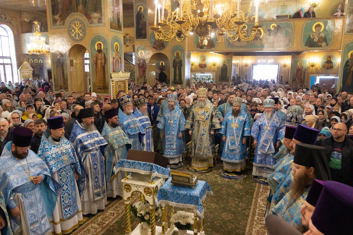 29 сентября в Вознесенском кафедральном соборе состоялась встреча ковчега с частью Пояса Пресвятой Богородицы и частицами мощей святых праведных Иоакима и Анны и новообретенной чудотворной Казанской иконы Божией Матери. Встречу святынь возглавил митрополит Новосибирский и Бердский Никодим.