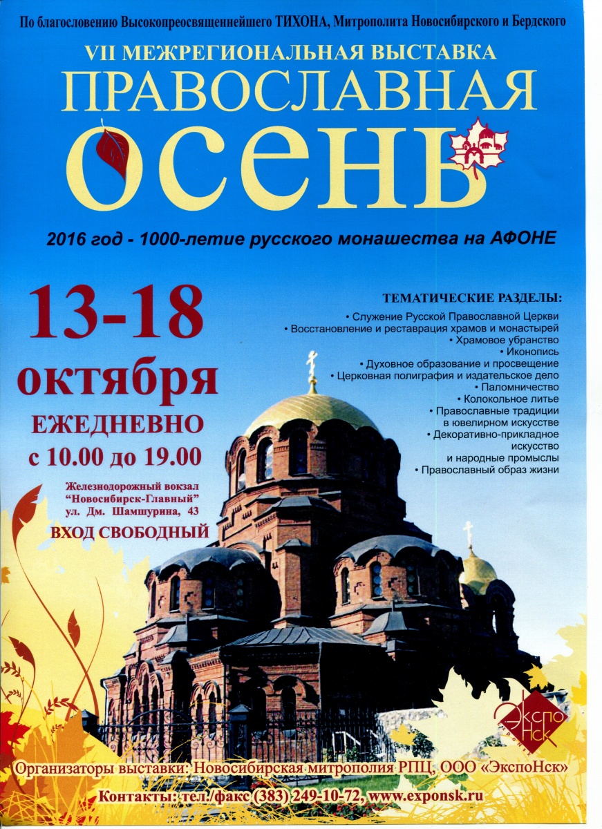 Выставка "Православная Осень - 2016"Место проведения: Восточный зал вокзала «Новосибирск-Главный», ул. Д. Шамшурина, 43