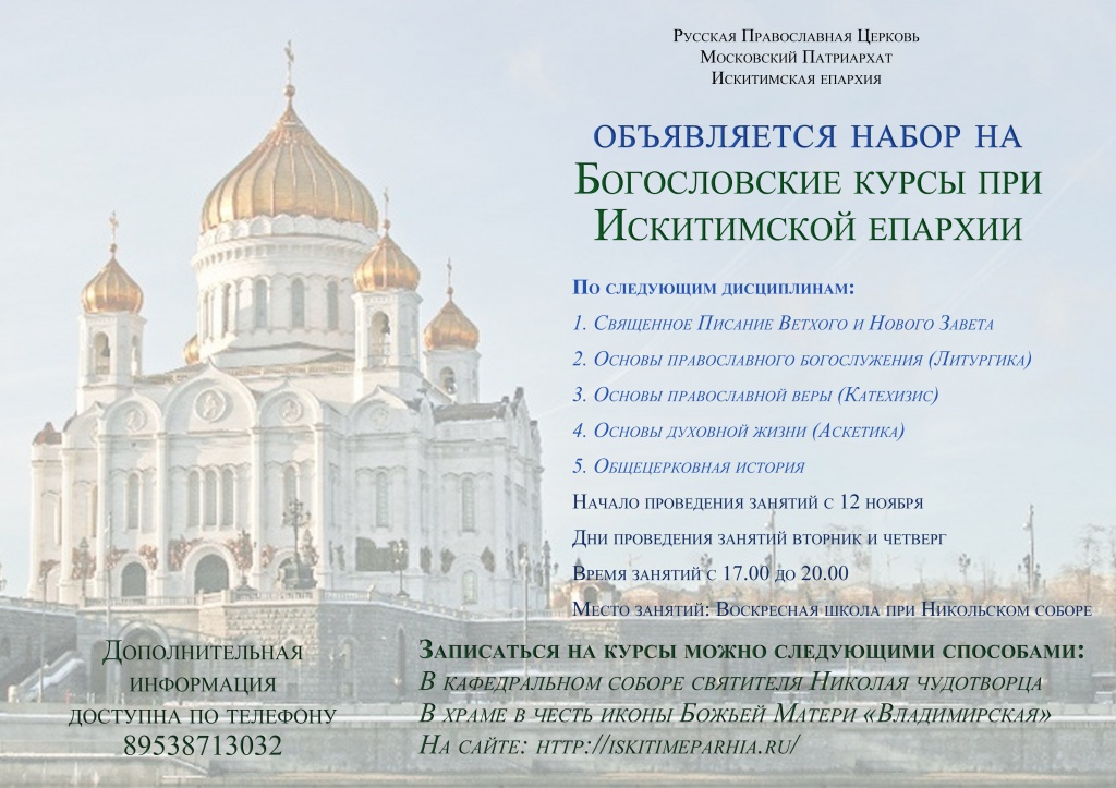 Объявляется набор на Богословские курсы при Искитимской епархии. Начало занятий 12 ноября.