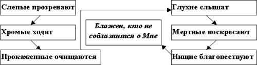 Порядок следования священных событий в Новом Завете достаточно симметричен. Здесь основной элемент -- семичастная структура. Ее центр -- Рождество или Воскресение. Остальные шесть окружающих их эпизодов Священной истории попарно параллельны. Семичастные структуры, связанные с Рождеством и Воскресением, энантиоморфны -- зеркально-симметричны. Рождественские события завершает Крещение Господне. Группа эпизодов, предшествующих Воскресению, начинается Преображением. Между Крещением и Преображением состоялось посольство Иоанна Предтечи к Христу с вопросом: "Ты ли Тот, Который должен придти, или ожидать нам другого?" (Лк.7.19). Ответ Господа -- семичастен, со структурой, подобной структуре важнейших священных событий.