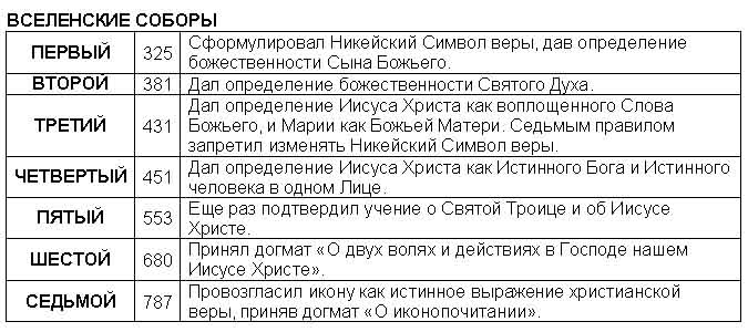 Рис.9. Вселенские Соборы, годы их проведения и основное вероучительное значение (по книге прот. Фомы Хопко "Основы православия")