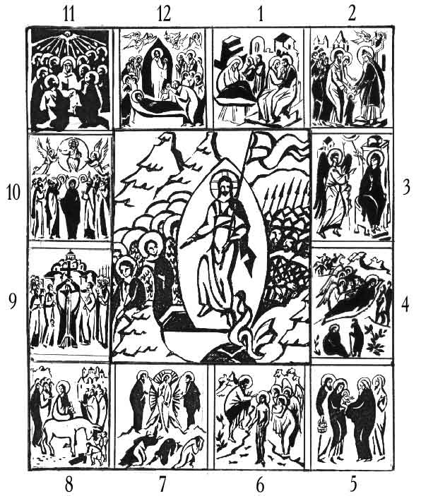 Рис.18. Хронологическая последовательность событий, отмечаемых Церковью как двунадесятне праздники, симметрична