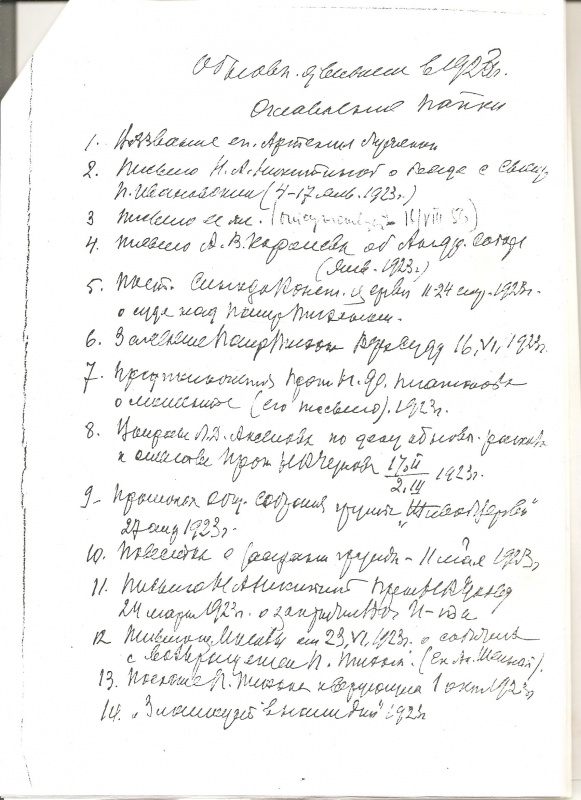 Прот.Н.Чуков. Дневник. Фрагменты. 1923 г. 21 января / 3 февраля Вчера к Пр[еосвященному] Венедикту приходил Еп. Михаил Попов[ix]. Принес «Тезисы предстоящей реформы Православной Церкви на поместном Соборе», составленные пр. Введенским и утвержденные пленумом ВЦУ. Они будут рассматриваться здесь. Тезисы представляют из себя декларацию. Много хороших порывов и мыслей, но мало конкретного материала; они нуждаются в большом развитии, а иные – в оговорках и даже исключении. Потом можно о них поговорить поподробнее. Письмо Пр[еосвященного] Венедикта до них дошло; нашли его объективным и говорящим больше в пользу их, чем автокефалистов.[x] У о. М.П.Чельцова был о. Архангелов[xi]; рассказывал в комических тонах о Живой церкви и «возрожденцах»[xii], что у них мало кто остался; что готовы записаться куда угодно, только бы возвратить прежний мир; что когда приезжает Красницкий - они «съеживаются и признают ВЦУ», а когда уезжает, опять не признают; что Шибов (из Гороховой) [xiii] выговаривает, зачем у них раздоры, что он «больше не будет высылать никого в угоду им, что тогда за них примется», и т.п. Между прочим, говорил (о.Архангелов – Л.А.), что народ, видя везде раздоры и колебания, говорит, что настоящая Церковь сейчас только в тюрьме, поэтому то каждое слово из тюрьмы ловят и придают большое значение, часто и перетолковывая его – каждый в своих интересах. Так, письмо Пр[еосвященного] Венедикта живоцерковники понимают как признание Пр[еосвященного] Артемия[xiv]… 10 / 23 февраля Был на свидании у Пр[еосвященного] Венедикта прот. П.Виноградов (из Иоан[новского] мо[настыр]я) и иподиакон митрополита В.Д.Фомин. Последний – скорбит, что его все ругают за служение с Николаем Соболевым[xv] и Пр[еосвященным] Артемием. Да, многие попали в очень странное положение, без вины виноватые. Если бы Пр[еосвященный] Алексий послушал меня во время процесса и признал тогда В.Ц.У., не было бы многого из того, что произошло потом печального (аресты, высылки). Он один нес бы на себе до Собора "вину” признания, а в епархии не было бы разделения: в Духов день духовенство признало его законным заместителем Митрополита. Не было бы и теперешнего разделения в пастве... Но так видно было угодно Богу! А теперь привести к миру труднее. Тем более, что глупые люди еще больше затягивают узел. Пр[еосвященный] Артемий хотел совершить чин Православия в лавре, но рьяные "помощники” его стали настаивать на Исаак[иевском] соборе. Артемий переговорил с Велтистовым, Стефановичем и, узнав от них о неподходящем настроении, сказал, что под благовидным предлогом отклонит свое служение у Исаакия[xvi]. Вполне благоразумно. Но что-то в П.Е.У. произошло и о. Журавский ("красный рассыльный” вероятно) был в Исаакиевском соборе и требовал служения Пр[еосвященного] Артемия там; на заявление, что певчие не будут петь, ответил: "А вы нам сообщите их фамилии, мы знаем, что сделать”… Вот эти постоянные угрозы арестами, это постоянное общение с "Гороховой” делает отвратительным всякое общение с подобными лицами, не разбирающимися в средствах, вносящими террор и насилие в чисто церковную внутреннюю жизнь. Эти методы затрудняют примирение и ожесточают массы. Это не к миру церковному. 11 / 24 февраля Вчера неожиданно вызвали на свидание. Пришла Нина Никитина[xvii] с письмом от Н.В.Чепурина – срочным (См.: Приложения. Документ 1). […] Преосвященный, М.П.Ч