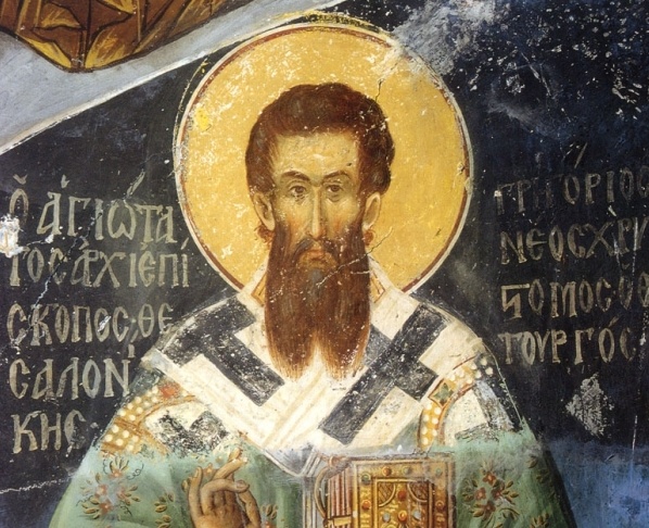 Следует полагать, исходя из анализа антилатинской полемики, что средний ангел в исихастской иконографии Святой Троицы должен олицетворять испостась Святого Духа, крестчатый нимб которого непреложно указывал на неотступное пребывание Духа со страждущим на кресте Иисусом Христом. Такое срединное расположение ипостаси Святого Духа находит свои истоки в паламитском богословии, где акцентирована особая и личная роль Духа в домостроительстве спасения, которую раскрывает энергия Божия, вечно происходящая от Отца через Сына.[35] Важно принять во внимание и наименования Святого Духа у свт. Григория Паламы «любовью» Отца и Сына (в отличном от блаж. Августина смысле, т.е. ни в коем случае не как «отношение» между Отцом и Сыном), а также параллели в современной паламизму византийской патристике (у свв. Феолипта Филадельфийского в 23 Монашеской беседе и прп. Григория Синаита в Слове на Преображение).[36]