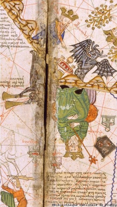 Рис.140 Alexandre le Grand accompagné par Satan (место между Китайо и Тендук, где Александр Великий поверг Сатану) из Каталонского Атласа.