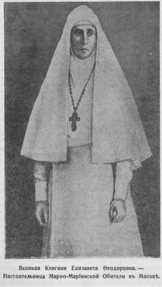 Священник о. Митрофан Серебрянский пошел с ними, и они вскоре вернулись к шумящей вне монастыря толпе, со словами: «это монастырь, и ничто больше». Обаяние всего ее облика было так велико, что {279} невольно покорило даже революционеров. Один из них (по-видимому студент) даже похвалил жизнь сестер, сказав, что у них не заметно никакой роскоши, а наблюдается только повсюду порядок и чистота, в чем нет ничего предосудительного. Видя его искренность, Великая Княгиня вступила с ним в беседу об отличительных особенностях социалистического и христианского идеала. «Кто знает», заметил в заключение ее неведомый собеседник, как бы побежденный ее доводами, «быть может мы идем к одной цели, только разными путями», - и с этими словами покинул обитель. «Очевидно, мы недостойны еще мученического венца»,- ответила Настоятельница сестрам, поздравлявшим ее с столь благополучным исходом первого знакомства с большевиками. Но этот венец уже недалек был от нее...