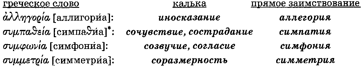Греческие слова, заимствованные напрямую или калькированием, называются
