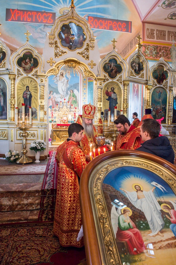 Пасхальные торжества в Вознесенском кафедральном соборе20 апреля в день Святой Пасхи Митрополит Новосибирский и Бердский Тихон возглавил праздничные богослужения в Вознесенском кафедральном соборе. 19 апреля в 24.00 Митрополит Тихон совершил крестный ход вокруг храма и Пасхальную утреню. 20 апреля Владыка возглавил Божественную литургию, после которой встретился с временно исполняющим обязанности губернатора Новосибирской области В.Ф. Городецким, председателем городского Совета депутатов Н.Н. Болтенко и председателем Законодательного собрания И.Г. Морозом. Почетные гости посетили Вознесенский кафедральный собор и обменялись с Владыкой пасхальными поздравлениями. Также 20 апреля Владыка Тихон совершил Пасхальную вечерню. По окончании богослужения Митрополит обратился к прихожанам с поздравлением и приветственным словом. "Мы готовили свои души Великим постом, чтобы осознать суть праздника Святой Пасхи. Все мы должны понимать, что как мы совершили подвиг поста, так и мир был спасен жертвой Христа. И сегодня мы радуемся ярким красным одеждам, красивым песнопениям, — сказал в своей проповеди Владыка. — Все было сотворено Божиим Словом. Богослужение — это и есть Божие Слово, оно должно возрождать наши души. Все, что мы делаем в Церкви, созидает Церковь внутри нас. Наша задача — не соблазняться прелестями грешного мира, а трудиться, чтобы достичь вечности. Пасха Христова — свидетельство вечной жизни".