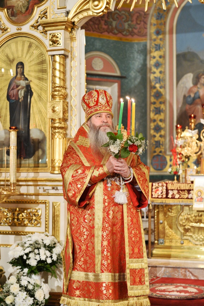 По традиции Владыка похристосовался с учащимися воскресной школы и детского хора, а также с духовенством, певчими, сотрудниками собора, учащимися Новосибирской Православной Духовной семинарии и прихожанами храма.