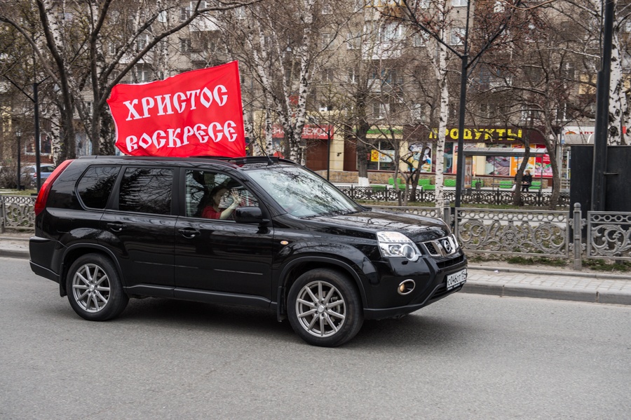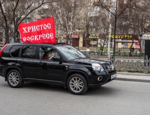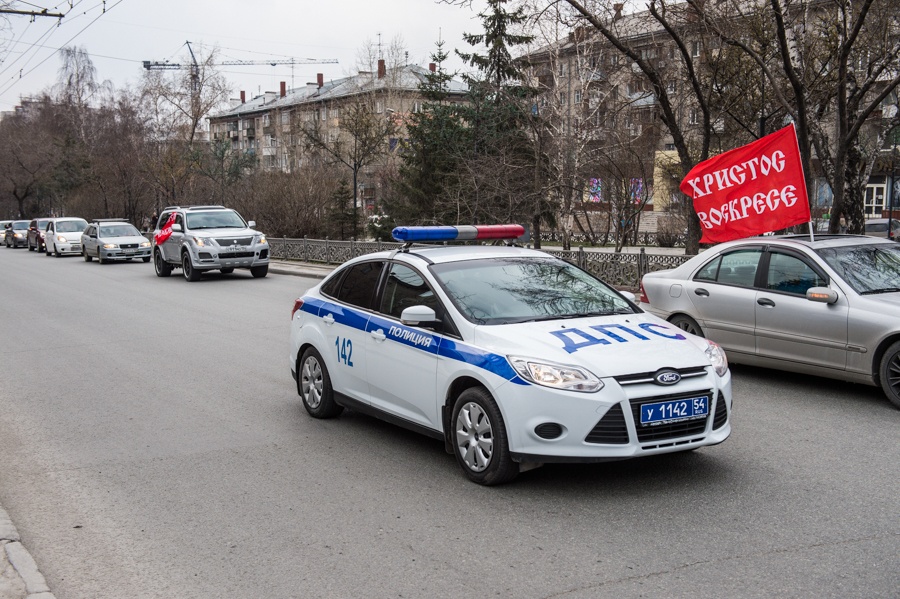 Пасхальный автопробег - акция православной молодежиВ Светлое Христово Воскресение православная молодежь Новосибирска на 40 автомобилях проехала через весь город с поздравительными флагами, делясь пасхальной радостью с новосибирцами. Подобную акцию активисты молодежного епархиального движения провели в прошлом году — 5 мая, в день Пасхи, ребята на более чем 10 машинах организовали автопробег от площади Ленина до площади Маркса. В этом году маршрут был значительно длиннее: от Троице-Владимирского собора на Западном жилмассиве, затем машины проехали по улице Титова через площадь Маркса, выехали на Октябрьский мост, далее по улице Кирова и по Красному проспекту до площади Калинина. Завершился автопробег у Вознесенского кафедрального собора.