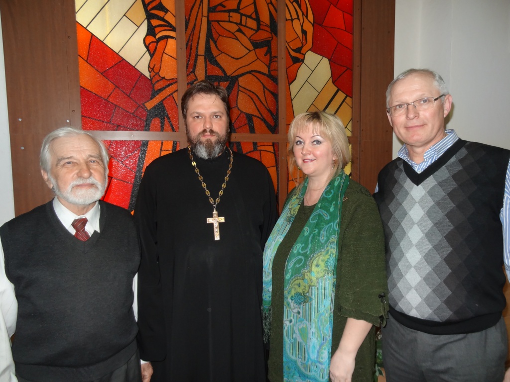 Пасхальная встреча православных авторов23 апреля, в среду Светлой седмицы, в конференц-зале окружного Дома офицеров состоялось очередное заседание клуба православных авторов «В начале было Слово». Руководитель и духовник клуба, Председатель Издательского Совета Новосибирской Митрополии протоирей Иаков Конкин, поздравил всех с Великим праздником Пасхи. Всем участникам заседания батюшка принес «Вестник Новосибирской Митрополии» с Пасхальным посланием Святейшего Патриарха Кирилла архипастырям, пастырям, диаконам, монашествующим и всем верным чадам Русской Православной Церкви. Так же в журнале Пасхальное послание Высокопреосвященнейшего Тихона Митрополита Новосибирского и Бердского боголюбивым клирикам, честному монашеству и благочестивым мирянам Новосибирской Митрополии. От издательского Совета все авторы получили первый выпуск материалов Российского центра Туринской Плащаницы при Сретенском монастыре г. Москвы под редакцией Александра Белякова, директора Российского центра Туринской Плащаницы. Батюшка подробно рассказывал «о тайне происхождения Образа на Туринской Плащанице», все внимательно слушали и задавали вопросы. На заседании клуба состоялась презентация новой книги профессора Василия Леонтьевича Кузнецова «Мне памятны былые времена» (издательство «Светоч», главный редактор Пендюрина Т.В.). Члены клуба православных авторов люди разные, интересные, многогранные и талантливые. Среди них геологи и преподаватели, историки и доктора наук, библиотекари и врачи. А Василий Кузнецов — профессор и просто замечательный человек. Очень украсила заседание клуба выставка народного творчества. Автор выставки Геннадий Григорьевич Пронин — не только поэт, но и мастер народных ремесел. Победитель конкурса «Золотая книга культуры Новосибирской области» в номинации «Мастер — золотые руки». Вот так, в очень теплой, домашней обстановке, прошло очередное заседание клуба православных авторов «В начале было Слово». С интересом слушали батюшку, читали новые стихи и рассказы, поздравляли с выходом новых книг и, конечно же, поздравляли друг друга с Великим Праздником Пасхи. Христос Воскресе! Воистину Воскресе!