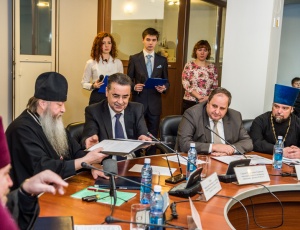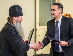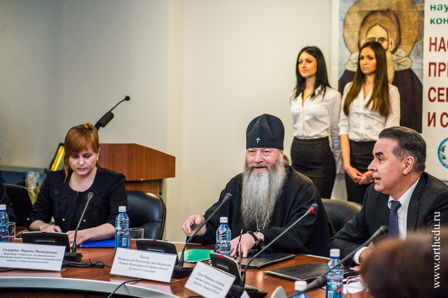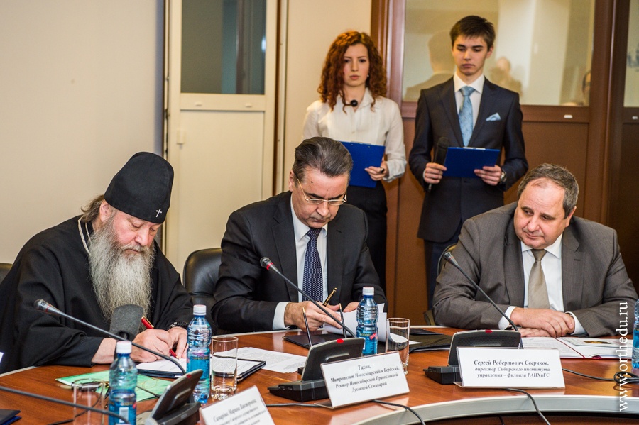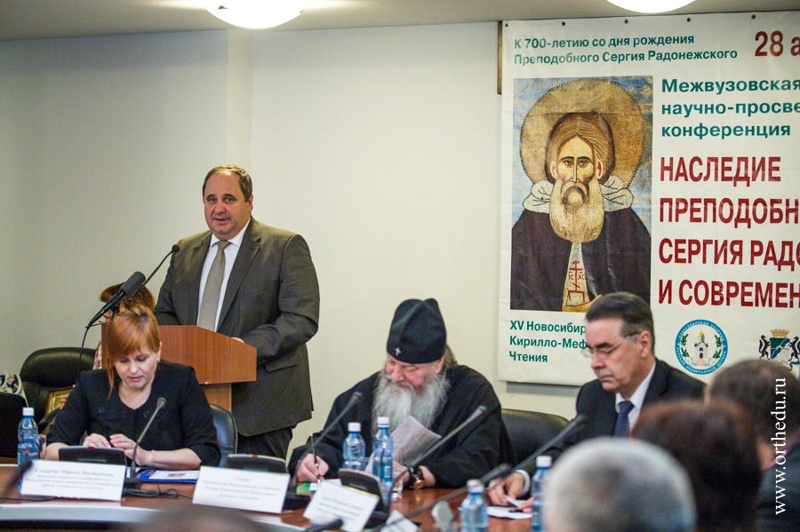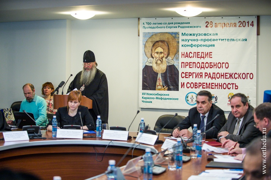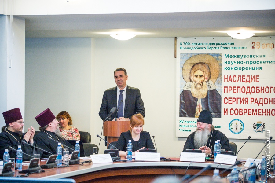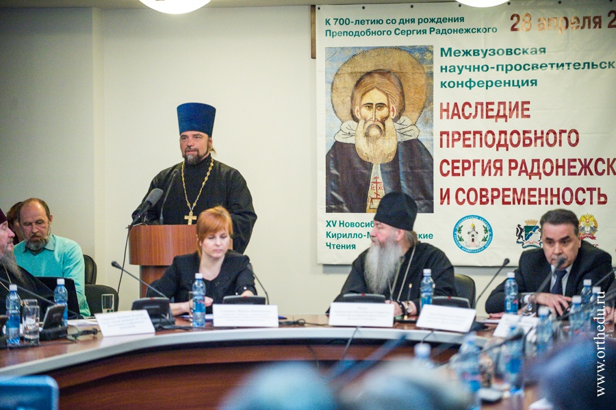 Наследие Преподобного Сергия Радонежского и современность24 апреля на базе Сибирского института управления, филиала Российской академии народного хозяйства и государственной службы, совместно с Новосибирской митрополией Русской Православной Церкви и мэрией Новосибирска в рамках XV Новосибирских Кирилло-Мефодиевских чтений состоялось пленарное заседание межвузовской научно-просветительской конференции «Наследие Преподобного Сергия Радонежского и современность». Мероприятие началось с церемонии подписания соглашения о сотрудничестве между Российской академией народного хозяйства и государственной службы при президенте Российской федерации и Новосибирской епархией Русской Православной Церкви. С одной стороны соглашение о сотрудничестве подписал Высокопреосвященный Тихон, митрополит Новосибирский и Бердский, ректор Новосибирской Православной Духовной семинарии, а с другой стороны — директор Сибирского института управления, филиала Российской академии народного хозяйства и государственной службы при президенте Российской Федерации, доктор физико-математических наук, профессор Сергей Робертович Сверчков. После подписания документа к участникам конференции с приветственным словом и докладом «Троице-Сергиева Лавра. Наследие Преподобного Сергия» обратился митрополит Тихон: — Добрый день, дорогие участники конференции. Новосибирская митрополия ведет большую работу в сфере образования, мы сотрудничаем со многими учебными заведениями и стараемся совместно решать многие проблемы, которые стоят перед современной молодежью, проблемы воспитания, образования. Церковь имеет тысячелетний опыт воспитания молодежи и старается ввести в нашу современную жизнь именно традиционное принципы воспитания и образования. Все чувствуют, что необходимо это взаимодействие с Церковью. Мы стремимся к тому, чтобы это имело правовую основу, и для этого подписываем такие соглашения о взаимодействии, соработничестве. И здесь, в этом соглашении, прописано то, как мы будем взаимодействовать и работать с Сибирским институтом управления. В основном это работа со студентами, проведение различных мероприятий. Затем прозвучало ответное слово директора Сибирского института управления, филиала Российской академии народного хозяйства и государственной службы при президенте Российской Федерации, Сергея Робертовича Сверчкова. После этого началась сама конференция. Далее с выступлением на трибуну вышел руководитель информационно-издательского отдела Искитимской епархии протоиерей Игорь Затолокин с докладом «Преподобный Сергий и становление русской государственности». Следующий доклад представил вниманию публики кандидат филологических наук, доцент кафедры литературы XIX-XXвв. НГУ священник Димитрий Долгушин. Доклад «Специфика межконфессиональных отношений в Сибирском регионе» представила кандидат исторических наук, профессор кафедры теории и истории государства и права Сибирского института управления, филиала РАНХиГС, Недзелюк Татьяна Геннадьевна. Последним выступил руководитель Отдела по взаимоотношениям Церкви и общества Новосибирской митрополии, руководитель секретариата Новосибирского регионального отделения международной общественной организации «Всемирный Русский Народный Собор» Красов Александр Ви