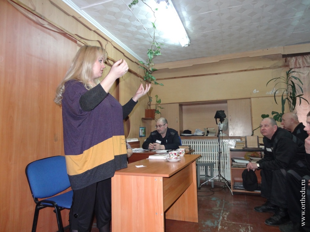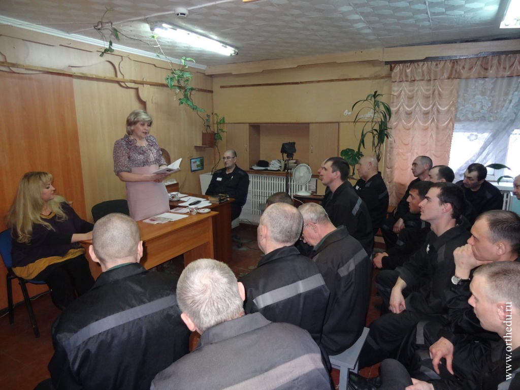 Творческая встреча прошла в рамках проекта «Акция милосердия «Давайте улыбнемся!», автором и руководителем которого является Наталья Владимировна Пендюрина — член общественного Совета ГУФСИН России по Новосибирской области. Наталья Владимировна стояла у истоков клуба «Прометей». В этот раз она привезла осужденным книги, епархиальные печатные издания и рассказала о новых формах работы епархиальной социально-психологической службы «Содействие». В современном мире человек сталкивается с различными жизненными трудностями: проблемы с воспитанием детей, супружеские конфликты, зависимости, депрессии, а порой и утрата смысла жизни. Для оказания социальной, юридической, психологической помощи и духовной поддержки людям, оказавшимся в сложных жизненных и семейных обстоятельствах, в Новосибирской Митрополии работает православный телефон доверия и служба социально-психологической помощи «Содействие». Помощь священника и православного психолога необходима в тот момент, когда человеку нужен Собеседник, который способен не только выслушать, проявить сочувствие и подсказать добрый совет, но и подвести его к осознанию личной ответственности за свою судьбу, семейную жизнь, воспитание детей, психическое здоровье и духовное состояние. Православный телефон доверия тел. 22 -739-22 (понедельник –пятница с 18-00 до 21-00).
