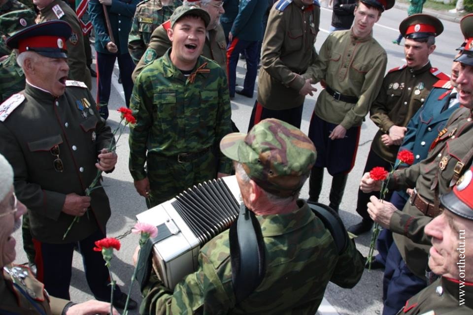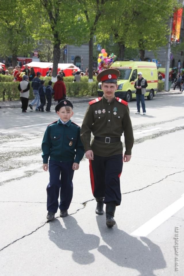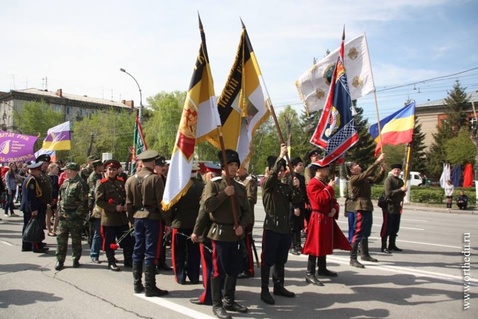 Казаки Новосибирска традиционно приняли участие в митинге возле Момунента Славы воинам-сибирякам...Каждый раз, приходя сюда, я с радостью вспоминаю 9 мая 1999 года, когда, уже поверив в неисправимую агонию великой страны, сюда не соизволил придти ни один (!) чиновник! Не было никого!!! Не было речей, суетливый "активистов", профессиональных "патриотов" и специалистов по работе с молодежью, ни мэров, ни пэров, ни губернаторов... Снят почетный караул… Последний год правления Ельцына... Единственной организованной частью общества, пришедшей сюда, были: ваш покорный слуга, атаман Новосибирской области (тогда им был Фороносов Е.А.) и несколько (20-25) казаков. При этом на площадь перед Монументом, как всегда, собрались тысячи новосибирцев. Ветераны (тогда в живых их было значительно больше…) совершенно растерянно стояли на тротуаре у входа. Увидев нас, они буквально ринулись к нам: «Батюшка! …Вы пришли нас поздравить!? ...Как мы рады!» …Они руки мне целовали!... Рассказывали эпизоды войны, связанные с Верой, чудом, молитвой. И мы с атаманом, встав рядом, пошли мимо этих плакучих ив, по этим нескончаемым плитам площади Монумента, а по сторонам шли две шеренги казаков. Неорганизованные новосибирцы вдруг собрались, сплотились, окружили нас, подтянулись к Монументу. Мы встали перед ним, вокруг нас выстроились полукругом люди. Я отслужил панихиду по воинам, павшим «за други своя». Мы возложили венок и следом со всех сторон вдруг потянулись сотни людей со своими цветами… Короче, праздник состоялся! А уж на следующий, 2000 год, откуда что взялось! Все чиновники враз записались в патриоты! Грандиозный митинг, полпред, губернатор, мэр, активисты! Музыка, воздушные шарики и прочее, и прочее, и прочее… Вот за этот всплеск патриотизма (пусть и казенного) я чрезвычайно благодарен Владимиру Владимировичу… А сегодня эти чиновники, составляя план проведения митинга, запихивают нас к хвост колонны, после партий (сегодня перед нами маячили белые флаги какой-то «Яблоки»? Что это за партия? Она-то какое отношение имеет к Победе?! А за нами стояла группка каких-то клоунов из «Союза СоТворцов Святой Руси. Народ спаситель»). Не желая опаздывать на панихиду, которую проводил митрополит Тихон возле часовни святого великомученика Георгия, казаки вышли из этой столь нелепой части колонны и направились прямиком к памятникам павшим воинам-интернационалистам («афганцам») и воинам, павшим в локальных войнах на территории СССР и России, которые установлены позади основного Монумента. Там, после окончания митинга, мы возложили цветы к памятникам воинам-афганцам и нашим братьям, павшим в Чечне, и проследовали к часовне, где приняли участие в панихиде. А потом была присяга молодых казаков.