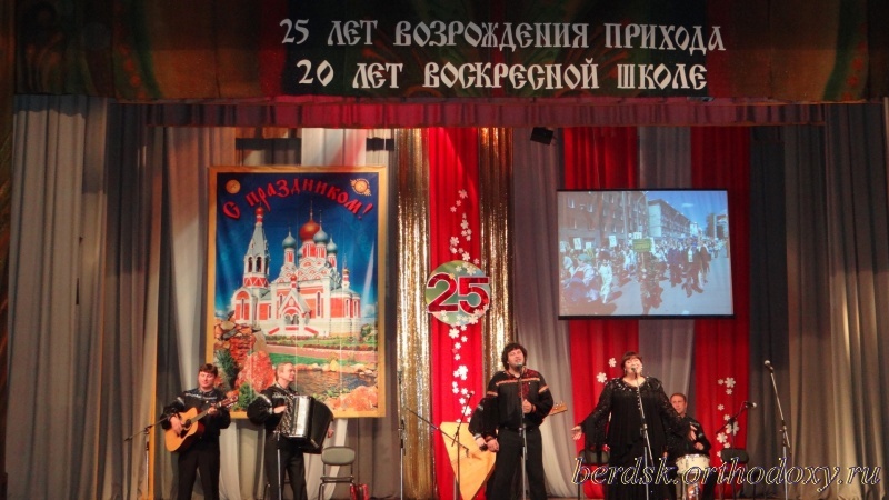 25-летие возрождения Православного прихода города Бердска отметили праздничным концертом4 мая в ДК "Родина" г. Бердска прошел праздничный концерт, посвященный 25-летию возрождения Православного прихода города Бердска, 20-летию воскресной школы и дню святых жен-мироносиц. Концерт посетил митрополит Новосибирский и Бердский Тихон. До начала концерта и после него в фойе были проведены мастер-классы, игры, викторины, принять участие в которых мог любой желающий. В концерте приняли участие творческие коллективы Бердска и Новосибирска, а так же ансамбль Геннадия Заволокина "Частушка". Так же после концерта прошла народная вечерка.