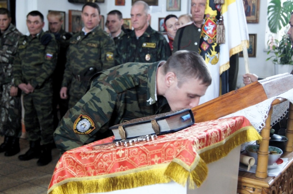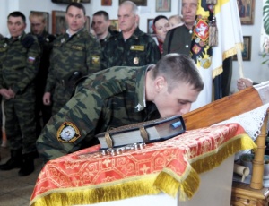 Присяга казаков в КаинскеВ воскресный день после Божественной литургии в Кафедральном соборе г. Куйбышева состоялось приведение к присяге новых казаков Каинской станицы. По сложившейся традиции присяга проходит с непосредственным участием священника. В храм атаманом торжественно было внесено знамя. Протоиерей Вадим Перминов отслужил молебен на благое дело. Пятеро бойцов, решивших связать свою жизнь с казачеством, присягнули на верность Богу и Отечеству.