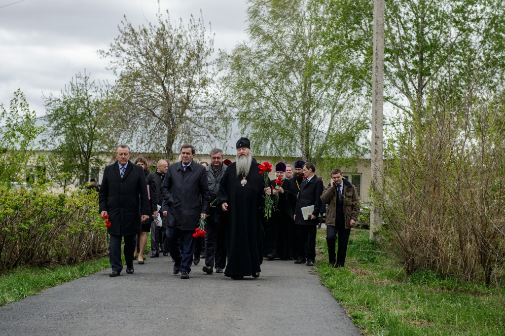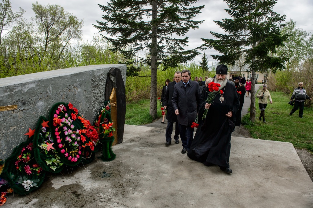 В завершение визита Владимир Городецкий и Митрополит Тихон возложили цветы к памятнику погибшим в Великой Отечественной войне воинам.
