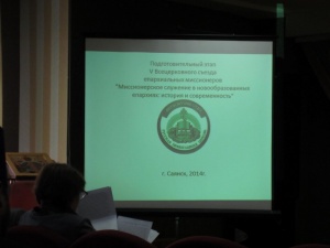 Участие в миссионерской конференцииПо благословению правящего архиерея владыки Филиппа руководитель миссионерского отдела Карасукской епархии иерей Андрей Гусев принял участие в V Всецерковном съезде епархиальных миссионеров “Миссионерское служение в новообразованных епархиях: история и современность”, которая состоялась 26 мая 2014 года в г. Саянске Иркутской области. Для участия в этой конференции прибыли миссионеры из Белгородской епархии, которые выступили с содержательными докладами, освещающими историю и современность миссионерского служения Русской Православной Церкви. Был отмечен особый вклад в дело христианского просвещения народов Сибири и Дальнего Востока на примере самоотверженного миссионерского служения святителя Иннокентия Вениаминова. Участники познакомились с интересной фотовыставкой, рассказывающей о служении святителя Иннокентия. Докладчиками были отмечены особые заслуги Алтайской духовной миссии в деле христианского просвещения народов Сибири. Были даны ценные практические рекомендации для организации миссионерского служения в новообразованных епархиях. Среди приоритетных направлений в деятельностисовременных миссионеров отмечался сбор и обработка информации о религиозной ситуации в новообразованных епархиях, а также активное участие в образовательной, общественной и культурной жизни людей. Миссионер должен являть собой пример ревностного служения евангельской проповеди в новообразованных епархиях Русской Православной Церкви.