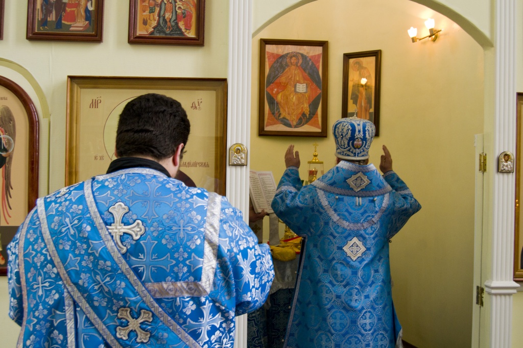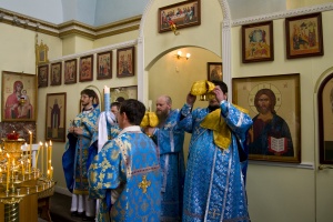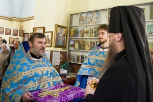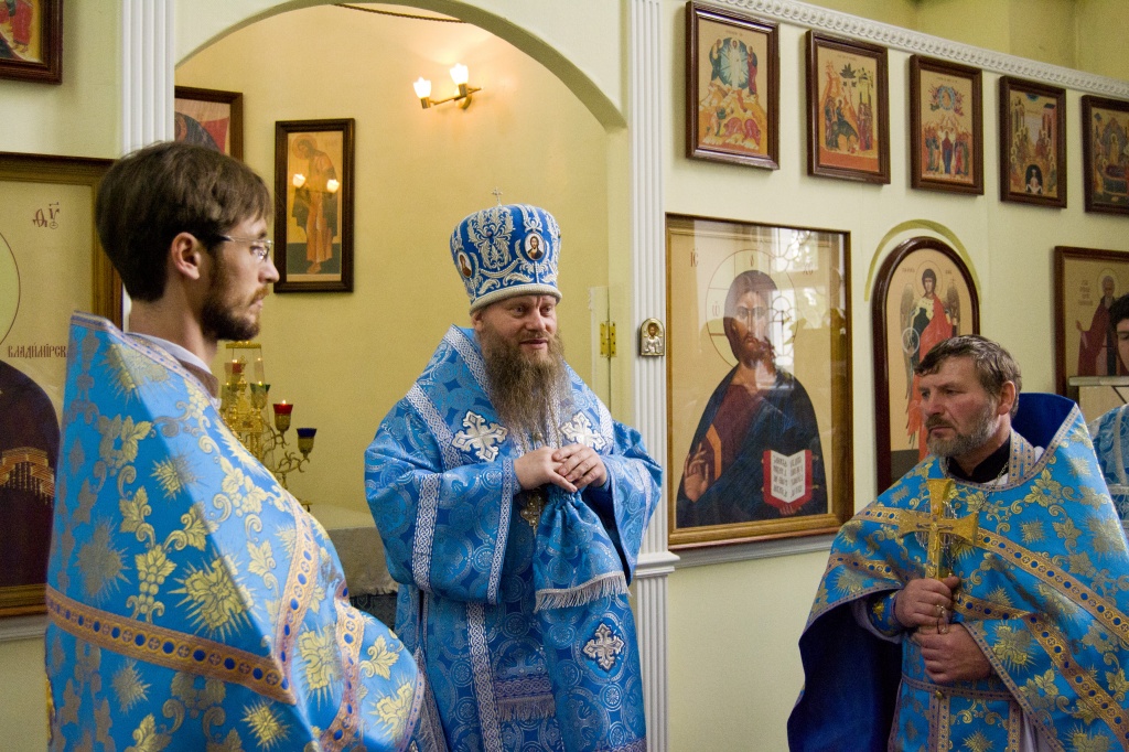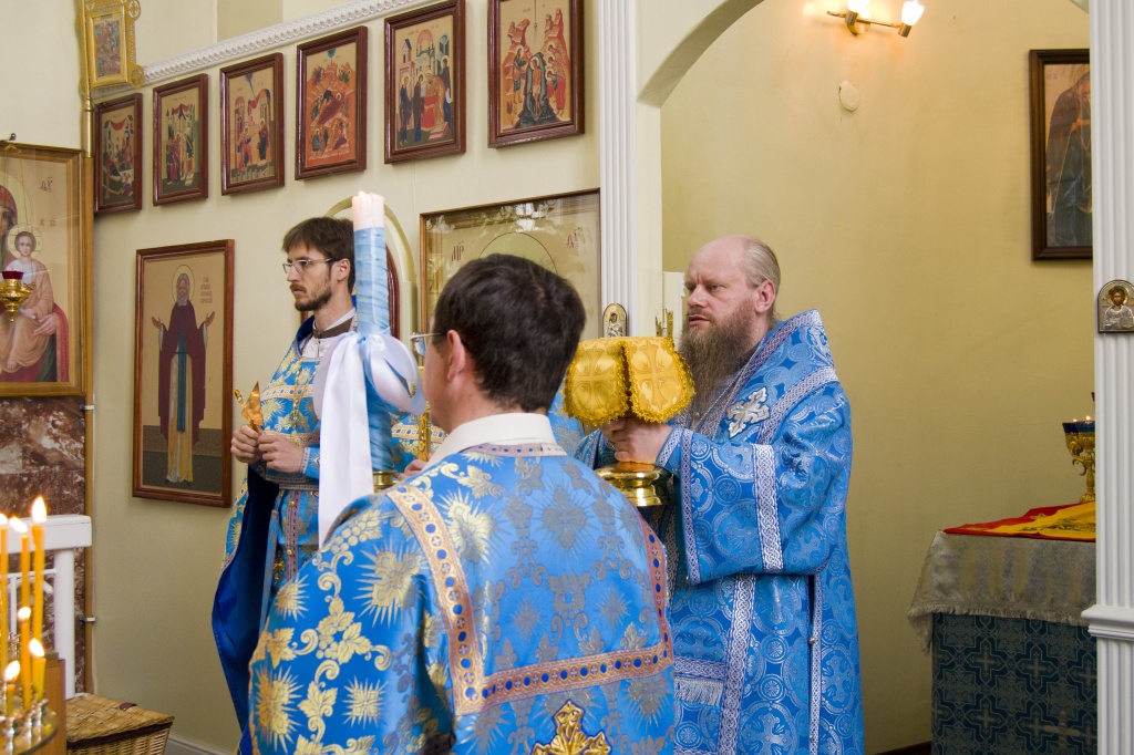 В храме в честь Владимирской иконы Божией Матери прошла праздничная Божественная Литургия (фоторепортаж)Сегодня в храме в честь Владимирской иконы Божией Матери прошла праздничная Божественная Литургия, которую возглавил Преосвященный Лука, епископ Искитимский и Черепановский. Ему сослужили: настоятель храма иерей Иаков, настоятель прихода в честь иконы Божией Матери Неупиваемая Чаша иерей Кирилл и старший диакон Кафедрального Собора Александр Кругликов. В храм, несмотря на будни, собралось много прихожан, которые наполнили атмосферу праздника улыбками и ликованием. После Литургии был совершен крестный ход, и после проповеди, произнесенной Владыкой, все собрались за праздничным столом. Мы сердечно поздравляем с Престольным праздником отца настоятеля и всех прихожан!