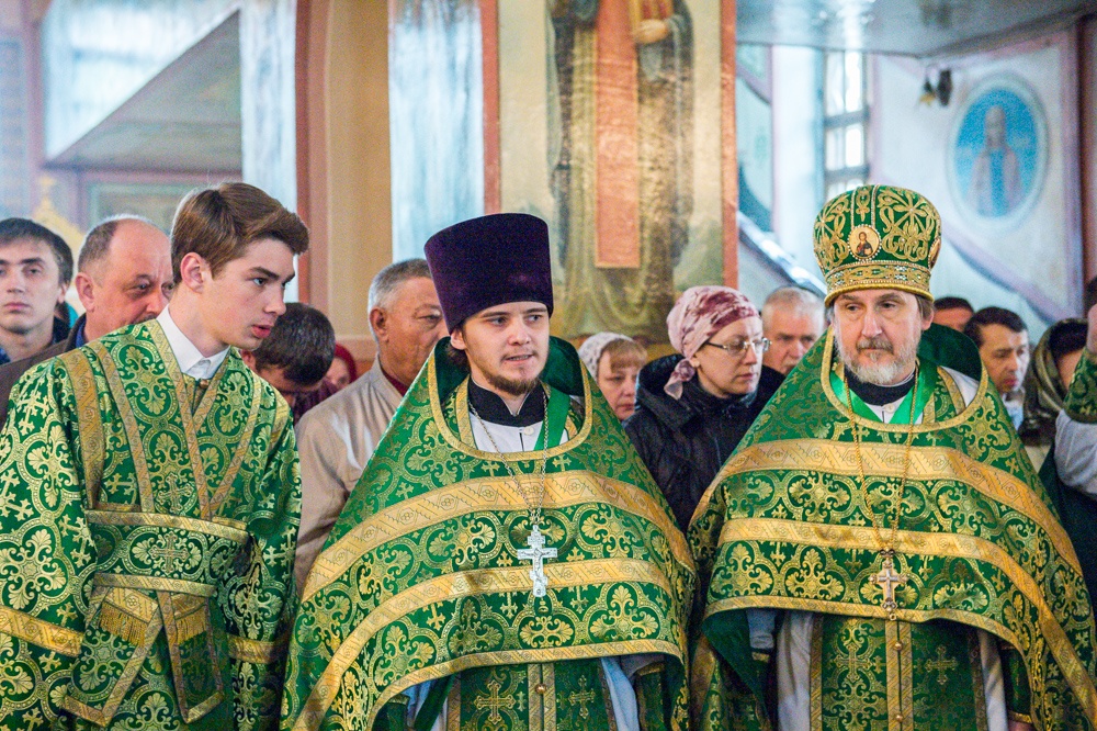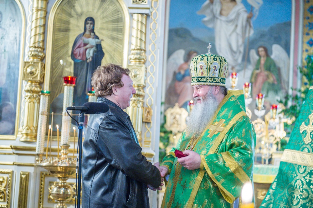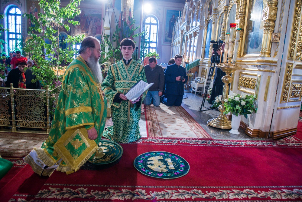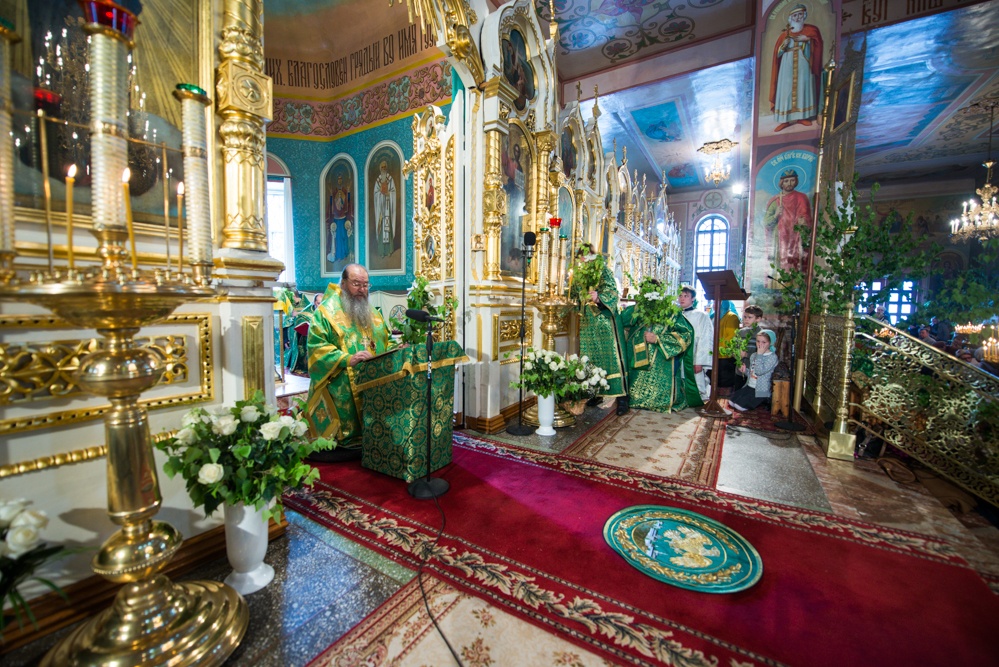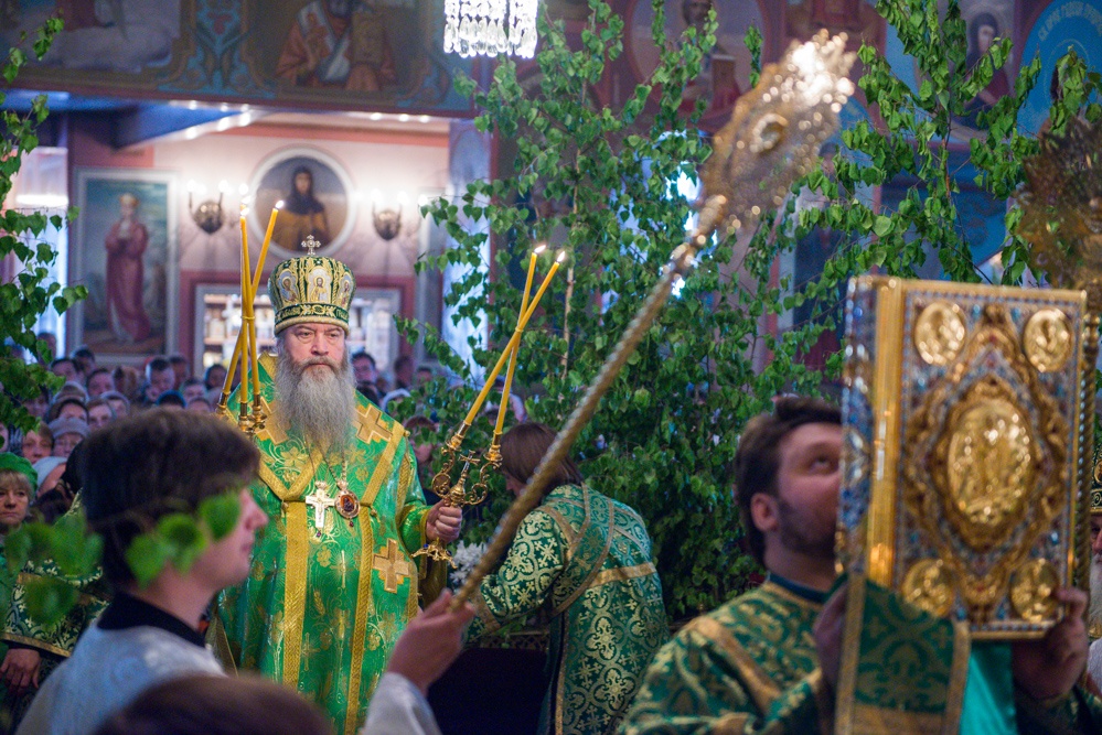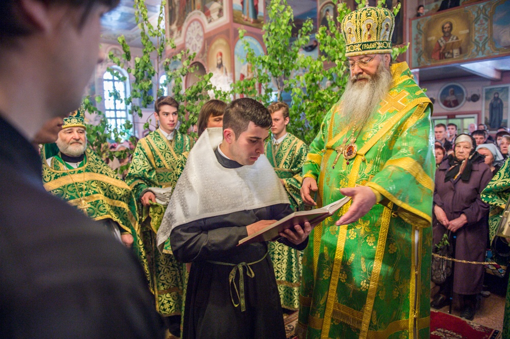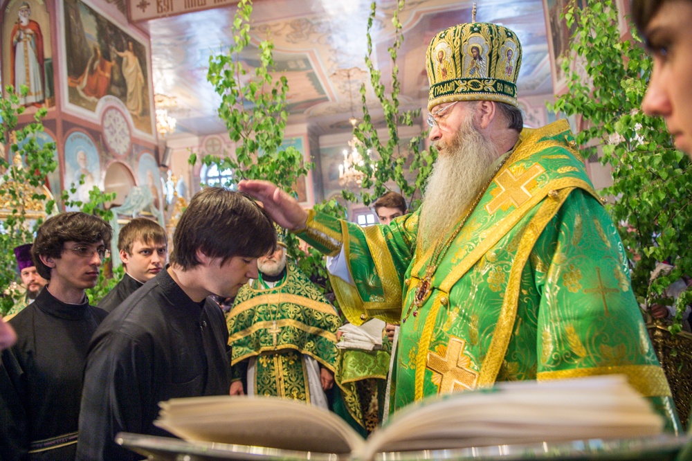 Праздник Троицы в Вознесенском кафедральном соборе (фоторепортаж)В день Святой Пятидесятницы Митрополит Новосибирский и Бердский возглавил Божественную Литургию в Вознесенском кафедральном соборе. Архипастырю сослужили духовенство Вознесенского собора. Перед богослужением Владыка Тихон совершил чин пострижения в чтецы выпускников Новосибирской духовной семинарии. По окончании Литургии в храме была отслужена Великая вечерня, за которой священнослужители и многочисленные прихожане собора коленопреклоненно молились о ниспослании Святого Духа. После богослужений Митрополит Новосибирский и Бердский Тихон наградил епархиальным памятным знаком «За усердные труды» за сотрудничество с Новосибирской Епархией и в связи с 35-летием Управления Федеральной Службы по техническому и экспортному контролю России по Сибирскому Федеральному округу государственного советника РФ 2 класса Александра Крупина, за сотрудничество с Новосибирской Епархией и в связи с пятилетием со дня образования полка ДПС ГБДД Главного Управления МВД России по Новосибирской области командира полка ДПС ГИБДД Главного Управления МВД России по Новосибирской области Дмитрия Логвинова, за многолетнее сотрудничество с Новосибирской Епархией, в связи с 10-летием со дня открытия социально-оздоровительного центра граждан пожилого возраста и инфалидов «Лунный камень» и по случаю дня социального работника директора Центра Владимира Романчука и заместителя директора Зинаиду Саваровскую. Так же Епархиальным памятным знаком «За усердные труды» был награжден за усердные труды во славу святой церкви и связи с 65-летием со Дня рождения поэт Александр Верин.