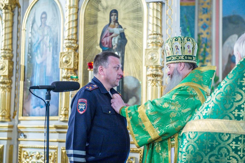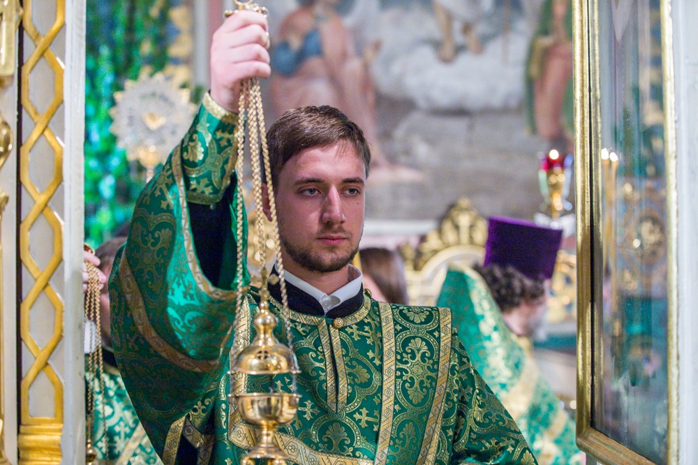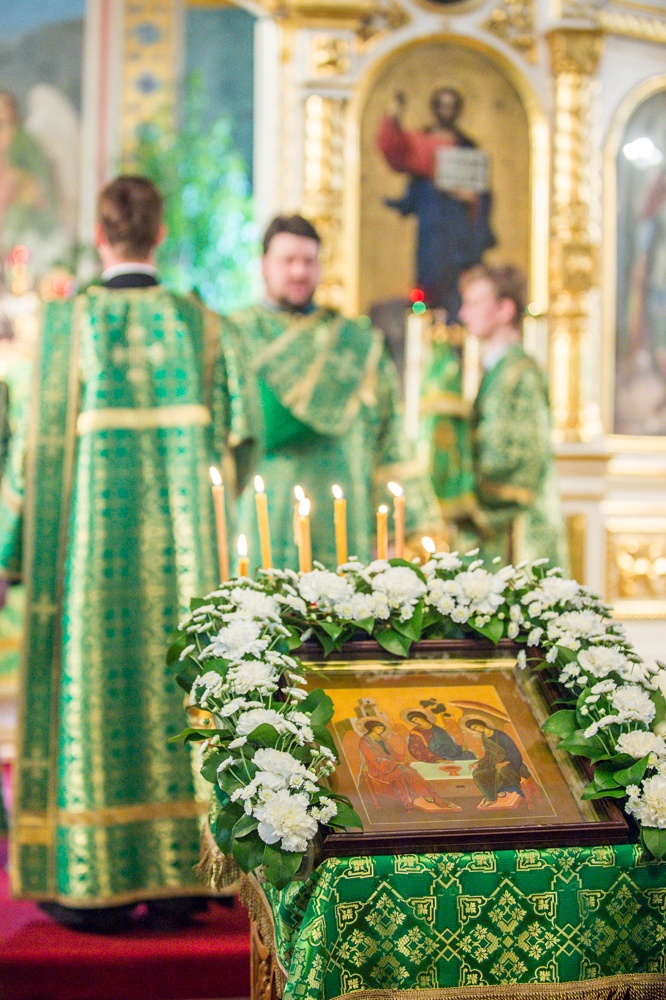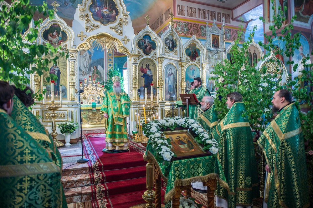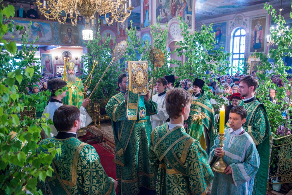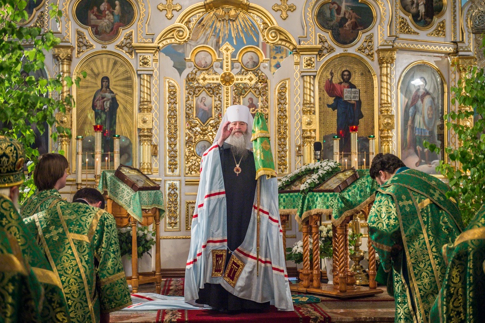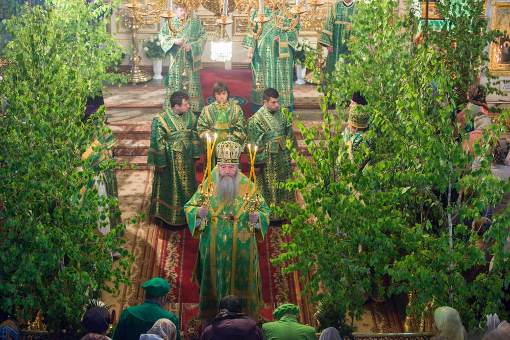Праздник Троицы в Вознесенском кафедральном соборе (фоторепортаж)В день Святой Пятидесятницы Митрополит Новосибирский и Бердский возглавил Божественную Литургию в Вознесенском кафедральном соборе. Архипастырю сослужили духовенство Вознесенского собора. Перед богослужением Владыка Тихон совершил чин пострижения в чтецы выпускников Новосибирской духовной семинарии. По окончании Литургии в храме была отслужена Великая вечерня, за которой священнослужители и многочисленные прихожане собора коленопреклоненно молились о ниспослании Святого Духа. После богослужений Митрополит Новосибирский и Бердский Тихон наградил епархиальным памятным знаком «За усердные труды» за сотрудничество с Новосибирской Епархией и в связи с 35-летием Управления Федеральной Службы по техническому и экспортному контролю России по Сибирскому Федеральному округу государственного советника РФ 2 класса Александра Крупина, за сотрудничество с Новосибирской Епархией и в связи с пятилетием со дня образования полка ДПС ГБДД Главного Управления МВД России по Новосибирской области командира полка ДПС ГИБДД Главного Управления МВД России по Новосибирской области Дмитрия Логвинова, за многолетнее сотрудничество с Новосибирской Епархией, в связи с 10-летием со дня открытия социально-оздоровительного центра граждан пожилого возраста и инфалидов «Лунный камень» и по случаю дня социального работника директора Центра Владимира Романчука и заместителя директора Зинаиду Саваровскую. Так же Епархиальным памятным знаком «За усердные труды» был награжден за усердные труды во славу святой церкви и связи с 65-летием со Дня рождения поэт Александр Верин.