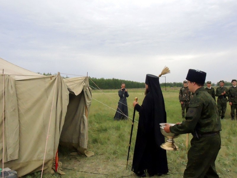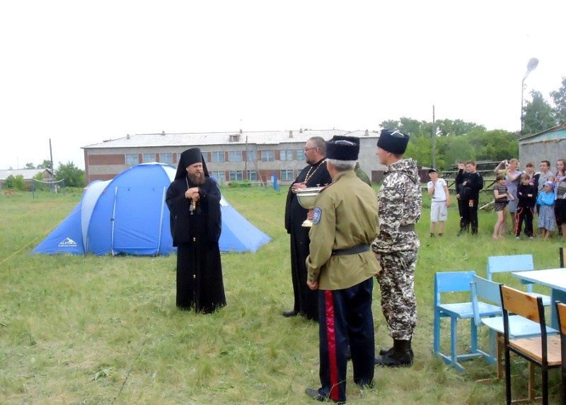 Открытие православного военно-патриотического лагеря «Казачья застава — 2014» (видео)С 15 по 25 июня 2014 г. по благословению Его Преосвященства епископа Филиппа на территории погранзаставы в с. Новокрасном Чистоозерного района Новосибирской области проходит летний православный военно-патриотический лагерь «Казачья застава — 2014». 15 июня на пограничной заставе в селе Новокрасном состоялась встреча епископа Филиппа с пограничниками и иерем Ильей Березовским, инициатором и организатором православного лагеря, а также с воспитанниками военно-патриотического лагеря. После приветственных слов Владыка отслужил молебен, а затем состоялось освящение лагеря и его территории. Цель проведения лагеря — патриотическое воспитание молодежи, формирование личности и духовно-нравственных основ на традициях воинской культуры и духовного наследия Церкви. В учебно-воспитательную программу включены следующие предметы: — Основы православной культуры, — История России и РПЦ, — История вооруженных сил России, — Основы народной казачьей культуры, — Общая физическая подготовка, — Рукопашный бой, — Строевая подготовка, — Основы тактики подразделения специального назначения, — Огневая подготовка, — Военно-медицинская подготовка. Занятия проводят опытные инструкторы, офицеры запаса и священнослужители. В этот же день епископ Филипп вместе с иереем Ильей Березовским и иереем Сергием Шишовым посетили храм в честь Покрова Пресвятой Богородицы с. Покровки Чистоозерного района и отслужили в нем молебен. За день сразу после Божественной литургии проехали 500 км, чтобы посетить православный лагерь «Казачья застава — 2014».