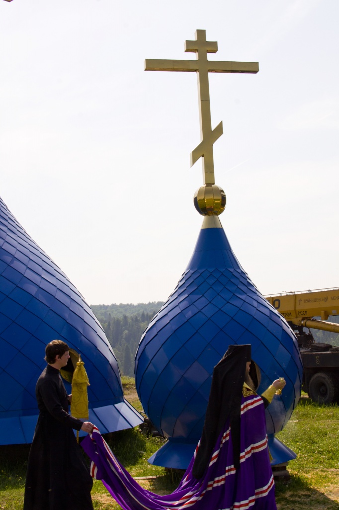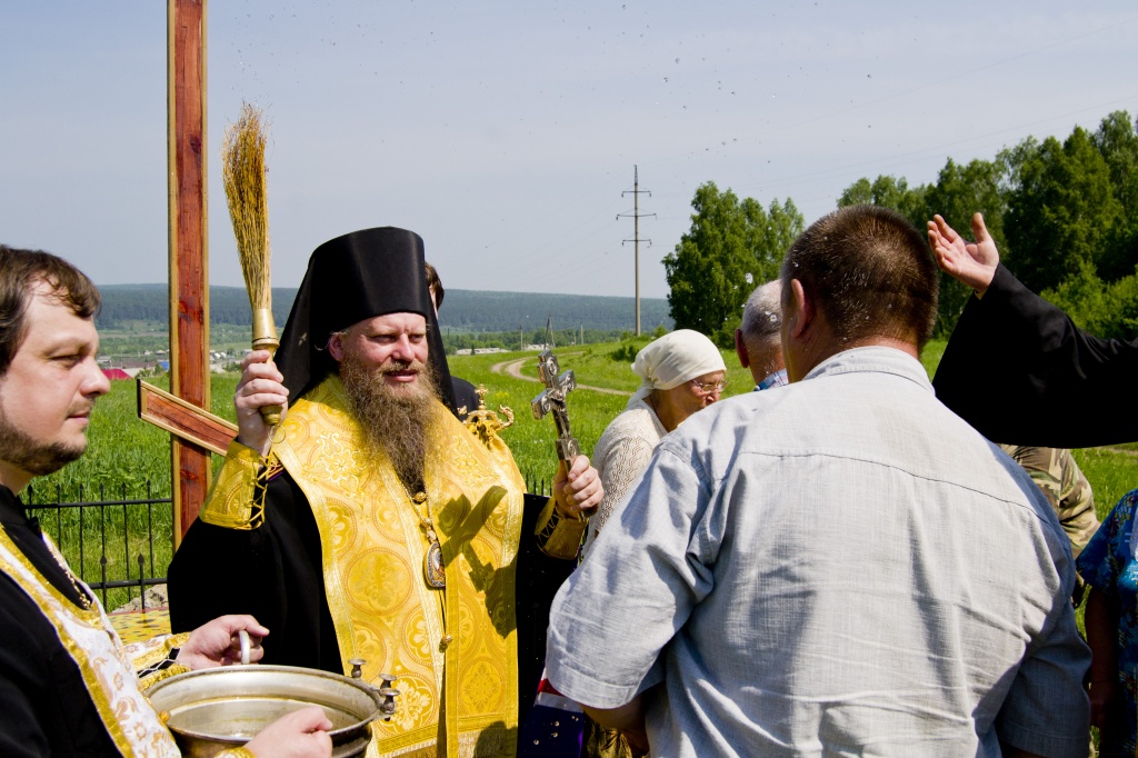 В этот же день Епископ Лука посетил село Серебренниково Маслянинского района. Здесь строится храм в честь святого равноапостольного князя Владимира. И сегодня происходило знаменательное событие: новопостроенный храм увенчался куполами, чин освящения которых совершил управляющий Искитимской епархией. На освящении присутствовал благотворитель строительства Владимир Александрович Блоков.