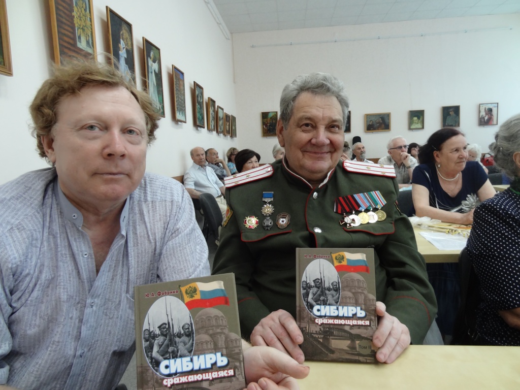 Клуб православных авторов в день памяти и скорбиПрезентация книг А.Г. Головиной «Еще не все о маме» и Ю.А. Фабрика «Сибирь сражающаяся». 22 июня, в День памяти и скорби, в литературной гостиной библиотеки Дома офицеров Новосибирского гарнизона состоялась очередная встреча клуба православных авторов «В начале было Слово» (руководитель клуба — протоиерей Иаков Конкин). В первой части встречи прошла презентация новой книги Новосибирского автора, доктора геолого-минералогических наук Антонины Григорьевны Головиной «Еще не все о маме». Во второй части состоялась презентация новой книги члена клуба православных авторов, заслуженного работника культуры РФ, военного историка, старшего научного сотрудника военно-исторического (экспозиционного) отдела Дома офицеров Новосибирского гарнизона, члена Петровской Академии наук и искусств Юрия Аркадьевича Фабрики «Сибирь сражающаяся», посвященная 100-летию начала Первой мировой войны 1914-1918 гг.