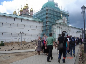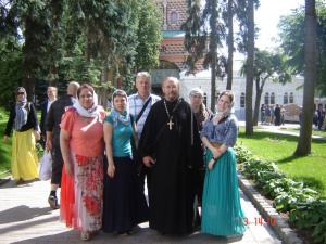 Паломническая поездка в ЛавруПо благословению Преосвященнейшего Филиппа, епископа Карасукского и Ордынского, с 10 по 17 июня состоялась паломническая поездка прихожан Карасукской епархии в Троице-Сергиеву Лавру. Группа паломников отправилась в поездку на поезде, поэтому в Сергиев Посад прибыла только 12 июня. Гостиница, в которой мы остановились, находилась в другом конце Сергиева Посада и оказалась недорогой и уютной сверх ожиданий. Расположена она при храме во имя Всех Святых. Чтобы исполнить завет Преподобного, после обеда мы приехали на электричке в Покровский Хотьков монастырь в селе Хотьково поклониться мощам святых Кирилла и Марии, родителей святого преподобного Сергия Радонежского. Это недалеко от г. Радонежа, в 10-ти километрах от Троице-Сергиевой Лавры. Помолившись в храме, мы приложились к святым мощам. Монахиня Васса рассказала нам об истории монастыря. Пока возвращались, прошел сильный ливень, после которого над Лаврой появились несколько радуг. Одна из них была необычайно яркая и имела все семь цветов, что случилось увидеть впервые. Пока шли к гостинице, радуги все сияли над Лаврой. На следующий день пришли поклониться святым мощам преподобного Сергия. Литургия совершалась в храме, где находятся мощи святого. Было необычайно много причастников. Народу было много и к гробнице святого Сергия подошли далеко не сразу. Пришлось постоять. Но на душе было глубокое умиротворение. Вспомнил, что когда впервые начал постоянно ходить в храм, первый запомнившийся образ святого был образ преподобного Сергия. Рядом с гробницей Сергия дверь, которая ведет в смежный храм. В нем множество мощей святых угодников Божиих: практически все помещение заполнено ковчежцами со святыми мощами. В центре Лавры из святого источника через трубочки течет вода. Несколько очередей: здесь люди набирают святую воду. Набрали и мы, попили, умылись. В Лавре царит особая атмосфера спокойствия, действие благодати Божией. Местность Сергиева Посада пересеченная. Подходя к Лавре с электрички, видим ее сверху, хотя в житии написано, что преподобный поселился на холме, называемом Маковец, то есть на возвышении, там, где сейчас и находится Лавра. Но подходя к Лавре, надо сначала спуститься вниз, а потом подняться вверх. То есть Лавра стоит на холме, но холм находится в низине. За Лаврой же местность уходит круто вниз. Во времена святого здесь был дремучий лес. Огромные ели, сосны, можжевельник, необычные прямоствольные клены, березы — деревья, которые и сейчас растут в дремучих лесах Подмосковья. Несколько раз мы еще бывали в Лавре и часть паломников из нашей группы даже причастилась в ее Троицком соборе.