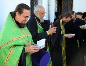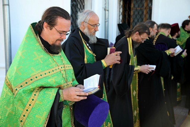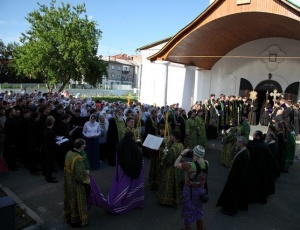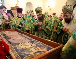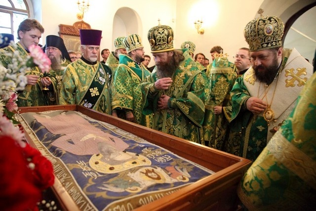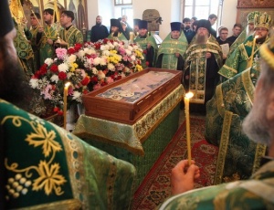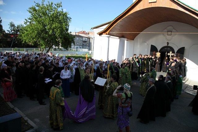 Святой старче Феодоре, моли Бога о нас!5 июля 2014 года в городе Томске состоялось торжественное событие — 150 лет со дня кончины Святого праведного старца Феодора Томского. Накануне праздника в Богородице-Алексиевском монастыре состоялось всенощное бдение, а в сам день торжества в Богоявленском кафедральном соборе была совершена Божественная литургия. Богослужение возглавил Высокопреосвщеннейший Ростислав, митрополит Томский и Асиновский. Ему сослужили: Высокопреосвященный Ионафан, архиепископ Абаканский и Хакасский, Преосвященный Амфилохий, епископ Усть-Каменогорский и Семипалатинский, Преосвященный Сергий, епископ Барнаульский и Алтайский, Преосвященный Иннокентий, епископ Мариинский и Юргинский и Преосвященный Силуан, епископ Колпашевский и Стрежевской. В богослужении также принимали участие выпускники и студенты Томской духовной семинарии в священном сане, духовенство Томской митрополии и гости из других епархий. За богослужением пели хор пастырского отделения и хор регентской школы Томской духовной семинарии. После отпуста Высокопреосвященнейший Ростислав обратился к богомольцам с архипастырским словом. В проповеди митрополит отметил, что не может город стоять без праведника, и этим праведником для Томска является святой Феодор. В завершение проповеди Высокопреосвященнейший Ростислав пригласил всех присутствующих поучаствовать в крестном ходе до Богородице-Алексиевского монастыря. Священство несло раку с мощами праведного старца от самого кафедрального собора до монастыря, по тем улицам, которые были при жизни святого. После крестного хода собор архиереев и духовенство проследовало на праздничную трапезу. За обедом Преосвященнейший Силуан сказал, что, изучая исторические материалы, легче доказать факт, чем опровергнуть, что святой праведный Феодор является императором Александром I, оставившим царский престол. Епископ Силуан был длительное время наместником Богородице-Алексиевского монастыря и во многом способствовал возрождению и укреплению духовной жизни обители. В этот день сподобились побывать на торжественных меропритяих, посвященных 150-летию праведного старца Феодора настотяель мужского монастыря в честь Всех Святых, в земле Сибирской просиявших, города Черепаново игумен Кирилл (Скакальский), штатный диакон монастыря Филипп Медведев, послушник монастыря Павел Горев и прихожанин Иоанн Волошин. По благословению Преосвященнейшего Луки, епископа Искитимского и Черепановского, и Высокопреосвященнейшего Ростислава игумен Кирилл сослужил освещенному собору в этот торжественный день, также за Божественной Литургией большое количество богомольцем причастились Святых Христовых Тайн.