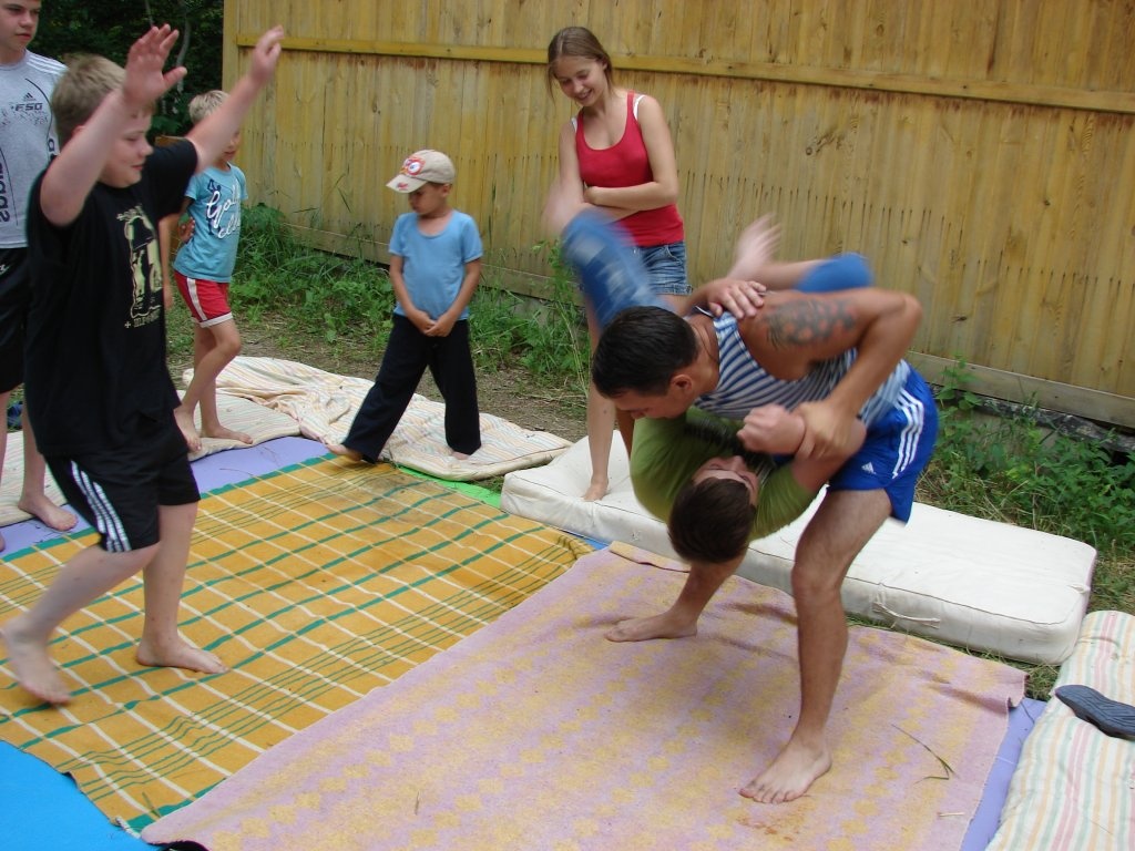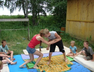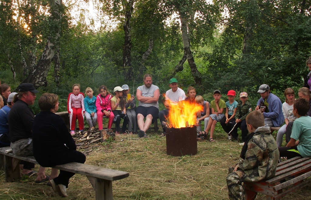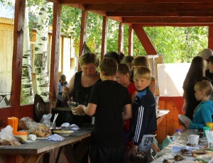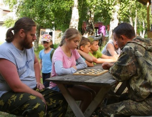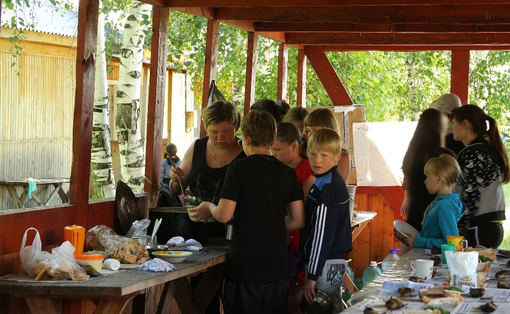 Детский православный лагерь на озере ЧаныПо благословению епископа Каинского и Барабинского Феодосия на озере Чаны прошел летний лагерь детских воскресных школ кафедрального собора в честь Рождества Иоанна Предтечи г. Куйбышев и соборного храма в честь иконы Божией Матери «Всех скорбящих Радосте» г. Барабинск. Проведение лагеря было приурочено к празднованию престольного праздника кафедрального собора, дню Рождества Крестителя Господня. 08 июля в 8.30 ребята разместились в арендованном «пазике» и отправились, по пути захватив группу из Барабинска. Всего ребят 23 разного возраста, от 9 до 17 лет. По прибытии на базу руководитель Александр Васильевич Яковлев распорядился всем размещаться. Дети с частью взрослых разместились в домиках, остальные в палатках. Первым делом знакомство, ведь многие видят друг друга впервые. Заготовка дров для приготовления обеда, все делаем своими силами, никто не отсиживается. Погода отличная: самое то купаться, что дети с радостью и отправились делать под присмотром взрослых. Женщины отправились варить обед. Озеро Чаны — самое крупное озеро в Западной Сибири, особенностью озера является его небольшая глубина при большой площади. Первые несколько метров дно озера илистое, но дальше хорошее, песчаное. Для купания это озеро очень удобно. Пока дети купалис,ь суп из рыбных консервов был готов. Меню постное, т. к. еще идет Петров пост. Далее — учебные занятия по начальной туристической подготовке, учимся ставить палатку. Тот, кто справился, идет проверить навыки стрельбы из пневматического оружия по импровизированным мишеням. Опять купаться, надо использовать день по полной, завтра может похолодать. На полдник компот с булочками. И учимся вязать узлы — прямой, встречный, уздечка и др. Спортивная эстафета. И опять… Да-да, какой лагерь без него, конечно, купание в озере. Ужин. В процессе приготовления пищи ребята по очереди помогают взрослым, дежурные убирают со стола, моют котлы, личную посуду каждый моет самостоятельно. Весь вечер посвящен общению, играм. День заканчивается у костра, песни под гитару и общение. После молитвенного правила — отбой. Второй день начался с молитвы — утреннего правила. Затем зарядка. Чистим зубы. На завтрак — манная каша, приготовленная на костре, это просто объедение. Возглавить команду ребят по приготовлению завтрака доверили Антону Владимировичу, единственному члену команды, у кого есть маленькие дети и который не забыл, как ее готовить. До обеда день прошел в занятиях, спортивных играх, соревнованиях и купаниях. Ответственный за проведение спортивно-тренировочных занятий Макуха Николай, представитель казачества Каинска, провел для ребят занятие по начальным основам рукопашного боя. Обед во второй день надеялись сварить со свежей рыбой из озера, по приезде сразу спросили, есть ли она, у смотрителя базы отдыха, но рыбы не оказалось. Однако на следующий день Илья (так зовут смотрителя), ничего не сказав, отправился на лодке ловить рыбу, и к вечеру у нас уже были свежие окуни. У Ильи оказалась даже коптильня для рыбы, где он для детей закоптил рыбу, за что ему огромное спасибо. Во второй половине дня проявилась изменчивость сибирской погоды, похолодало. Набежали тучи, о купании не может быть и речи. Начали переживать: если пойдет дождь, автобус не сможет доехать до базы, т.к. неск