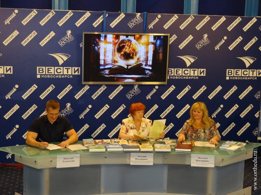 На протяжении часа в открытой студии говорили о проделанной работе общества книголюбов, состоявшихся интересных проектах, отвечали на вопросы журналистов и участников пресс-конференции, принимали поздравления с юбилеем! Вел пресс-конференцию сын журналиста Сергея Лукинского – Николай Лукинский. «Еще не раз, в 2014 «юбилейном» году, мы будем встречаться с нашими книголюбами, с людьми, которым интересно читать, интересно писать, думать и интересно жить!» — сказала в завершении Татьяна Викторовна Пендюрина.