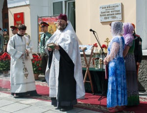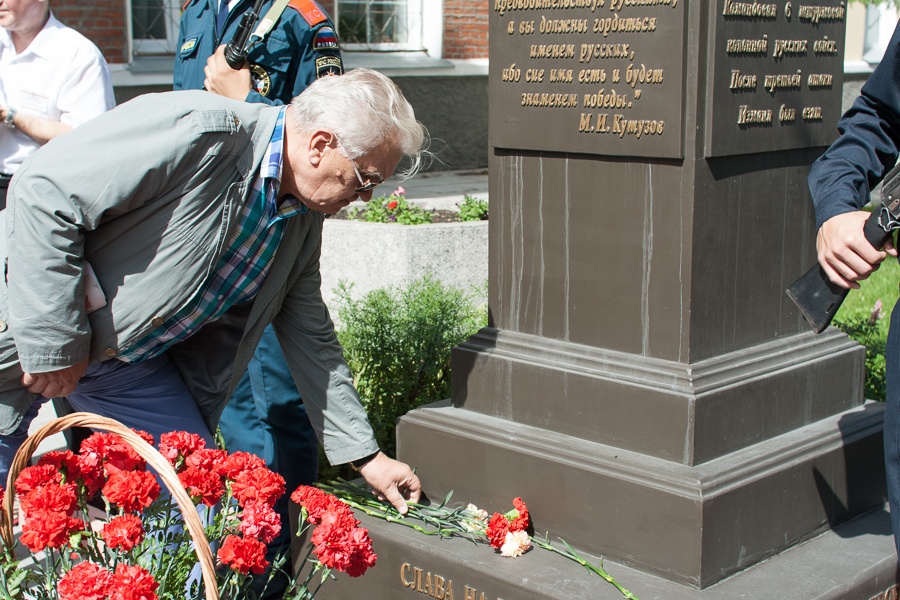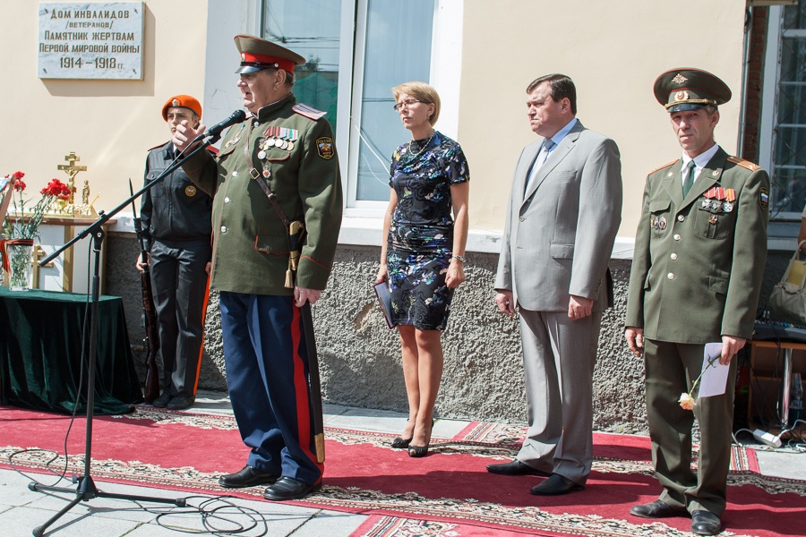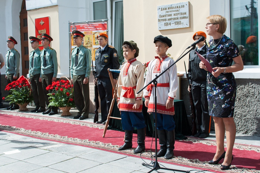 В первую очередь священники совершили панихиду по воинам, погибшим «за веру, царя и отечество» в Первой мировой войне: «Мы будем молиться за тех, за кого уже 100 лет никто не молился. Потому что XX век был страшен». На мероприятии вспомнили о подвиге двух новониколаевцев, разносчиках газет Пантелеймоне Камневе и Андрее Семенове, которые были такого же возраста, как и мальчишки, принявшие участие в мероприятии (на фото) и сбежали на фронт. «Воевали они настолько храбро и мужественно, что были удостоены высшей солдатской награды – Георгиевского креста. Когда они вернулись на родину, почти весь Новониколаевск вышел их встречать. Вот такие были новониколаевцы сто лет назад», – рассказала ведущая мероприятия. Затем к микрофону вышел военный историк, научный сотрудник музея истории СибВО, старшина Сибирского казачьего войска Юрий Фабрика. Он отметил, что сегодня новосибирцы в первый раз за 100 лет отдают почести героям этой уже забытой войны. «Грех великий на нас лежит, что мы забыли своих дедов и прадедов, проливших кровь за нашу Родину», – считает он. Военный историк рассказал о вкладе Сибири в I Мировую войну: «Сибирь дала 1,2 млн бойцов, лучших в мире воинов. Наша Томская губерния, куда входил Новониколаевск, дала более 600 тысяч. Наш город превратился в огромный центр подготовки войск для действующей армии. На начало войны в нашем городе проживало 60 тысяч человек населения, а через два месяца – уже 120 тысяч. Каждый второй новониколаевец надел военную форму», – рассказал военный историк. По словам Юрия Фабрики, в Новониколаевске во время Первой мировой войны действовало 4 госпиталя, где одновременно находилось более 4 тысяч солдат и офицеров русской армии. Кроме того, Сибирь была поставщиком продовольствия не только для армии, но и для двух столиц: «Каждый день летом отправлялись 1200 вагонов с продовольствием, зимой – 900 вагонов. Только крупы – 48 вагонов в сутки», – привел цифры историк. От лица врио губернатора Новосибирской области Владимира Городецкого к собравшимся обратился его заместитель Александр Титков. Он отметил, что такие мероприятия позволяют «понять истоки мужества тех людей, которые в разные века сохраняли нам возможность жить в свободной и сильной стране». «Нам трудно сегодня представить, что в 1914 году началась Первая мировая война, а уже спустя год жители тогда еще небольшого города принимают решение строить здание в память о героях той войны, которая еще только началась. По меркам сегодняшней жизни это трудно представить, хотя в большинстве своем сегодняшние новосибирцы куда более обеспечены и грамотны, как они считают в знаниях своей истории и перспективах развития нашего города. Вот что действительно вызывает уважение», – заключил вице-губернатор региона. Акция завершилась возложением цветов к памятнику М. И. Кутузову и к памятной доске, указывающей на то, что Дом офицеров Новосибирского гарнизона является памятником жертвам Первой мировой войны.