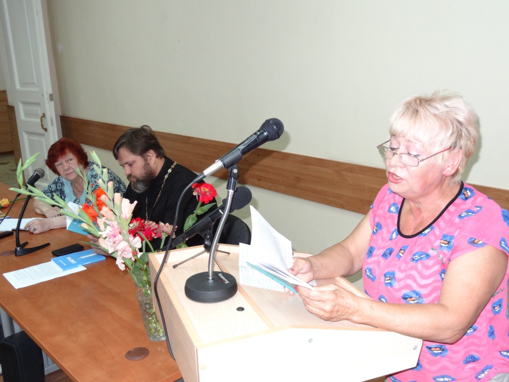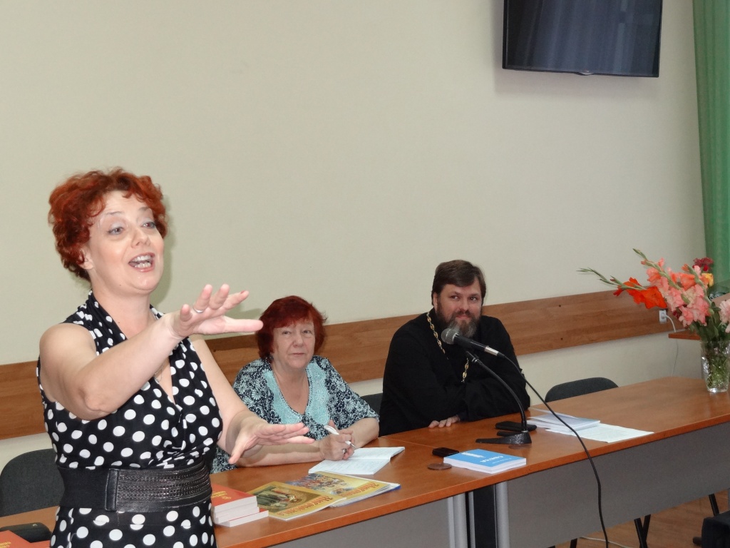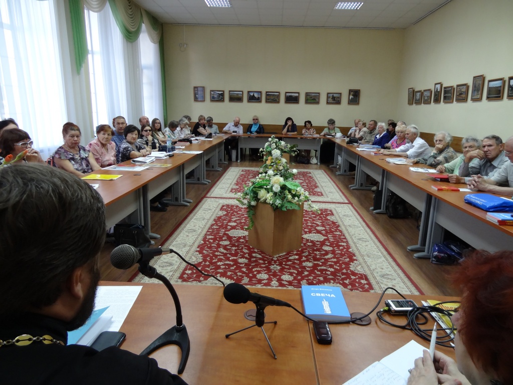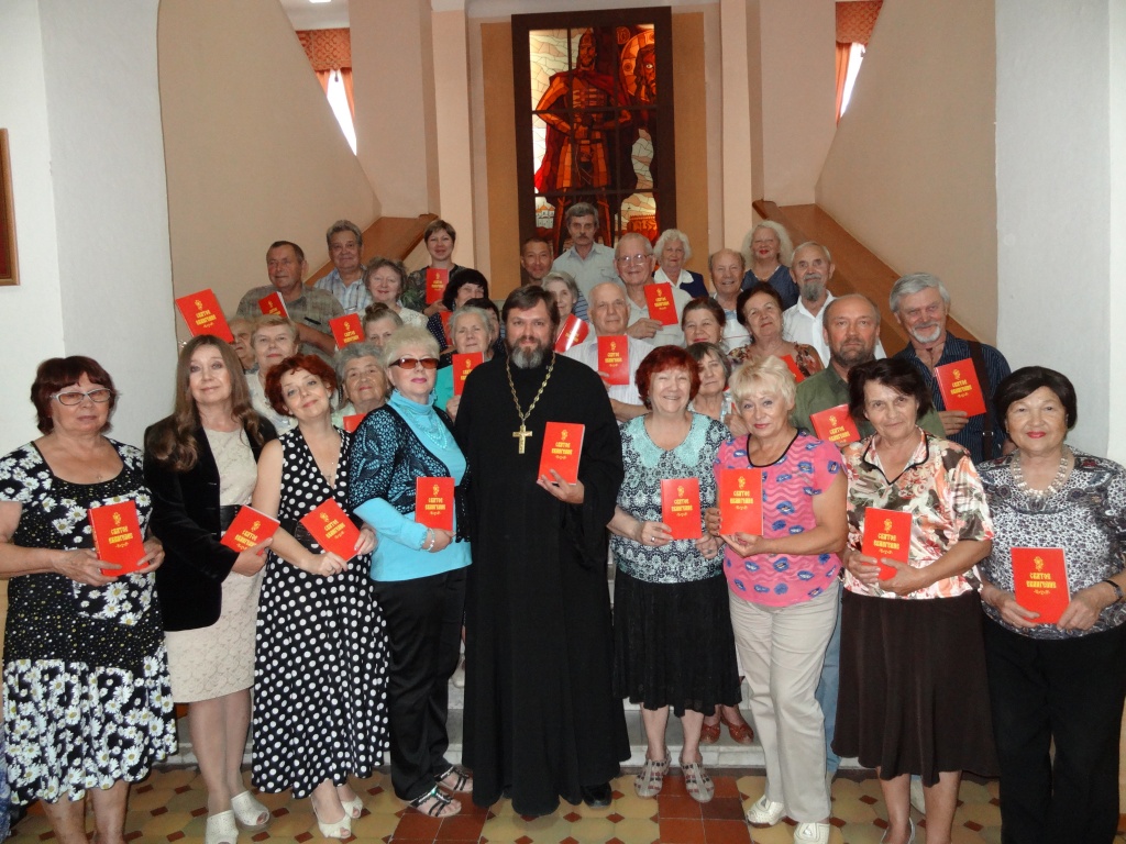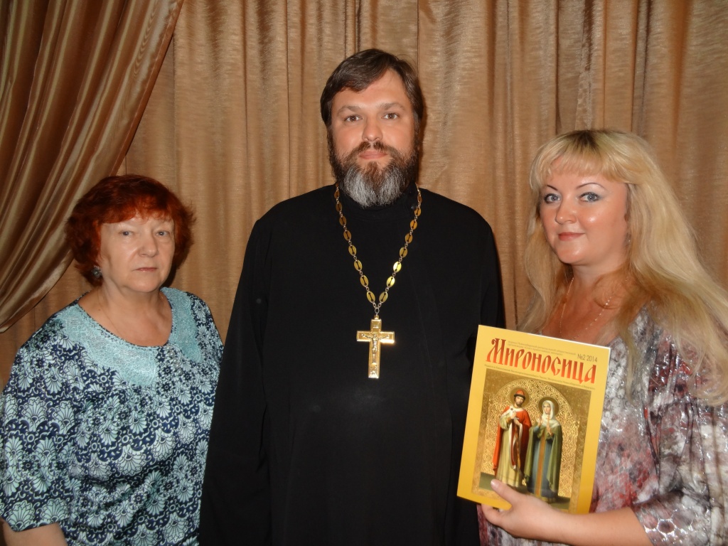 Православные авторы встретились с «Мироносицей № 2» (+ видео)20 августа в окружном Доме офицеров состоялось очередное заседание клуба православных авторов «В начале было Слово». Открыл заседание руководитель издательского совета Новосибирской Митрополии, руководитель клуба, протоиерей Иаков Конкин. Он рассказывал о празднике Преображения Господня, отвечал на многочисленные вопросы, познакомил собравшихся со вторым номером журнала «Мироносица» и поблагодарил главного редактора Татьяну Пендюрину за ее труды. Во второй части заседания состоялась презентация новой книги «Свеча» преподавателя истории и активного члена клуба православных авторов Игоря Васильева. После шло обсуждение новой книги, авторы делились своими впечатлениями. По инициативе организатора молодежного клуба при Храме во имя святого мученика Вонифатия Елены Скибы, члены клуба стали участниками благотворительной акции. Все получили в подарок Евангелие. Благотворительную акцию "Святое Евангелие в каждый дом" организует и проводит православное издательство «Сибирская Благозвонница». На протяжении всего заседания был включен «Открытый микрофон», все желающие могли прочитать свои новые произведения. А желающих всегда очень и очень много! В завершение заседания прозвучали песни в исполнении дипломантов V Международного фестиваля "Арзамазские купола 2014" Ольги Петуховой и Олега Минакова ( «К Пасхе»; «Красные гроздья» сл. Л. Абзаевой, муз. О. Минаков; «Живоносный источник» - автор слов и музыки – Олег Минаков).